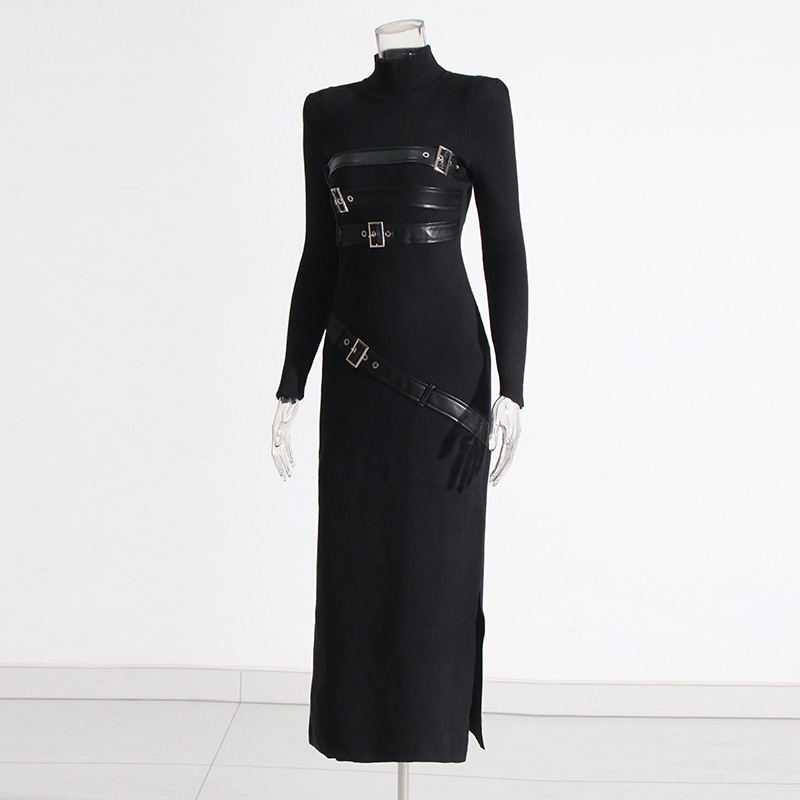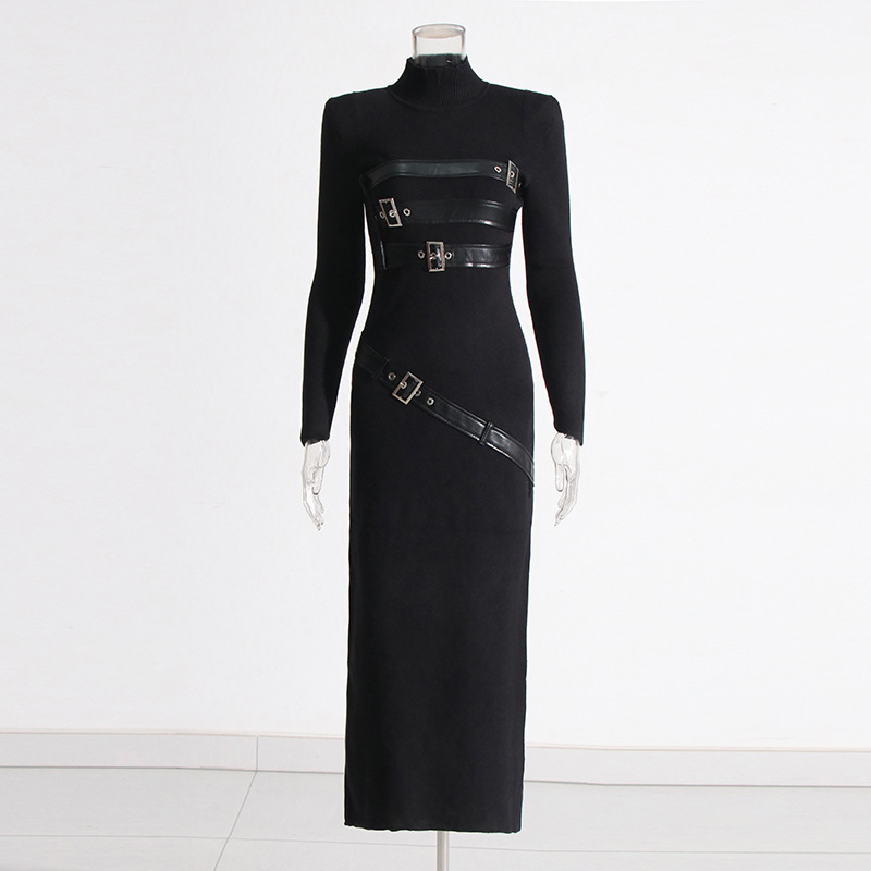 High Sense Stitching Tied Design Slim Fit Long Dress Women's