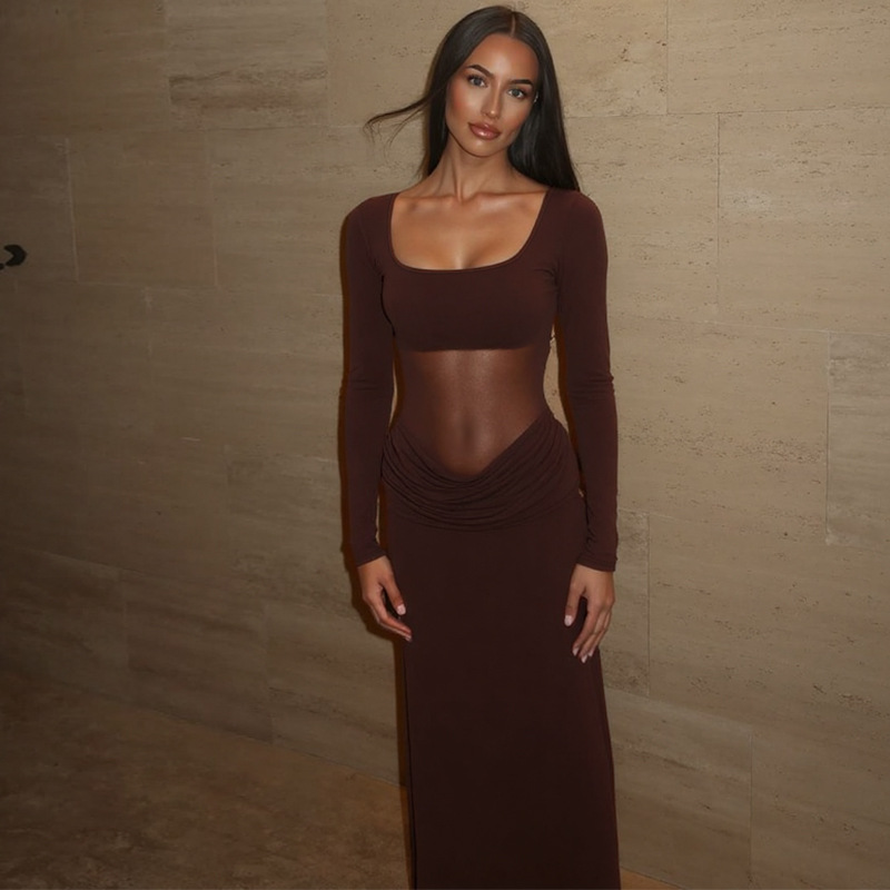 Hot Mesh Stitching Stretch Slim-fit Long-sleeved Dress