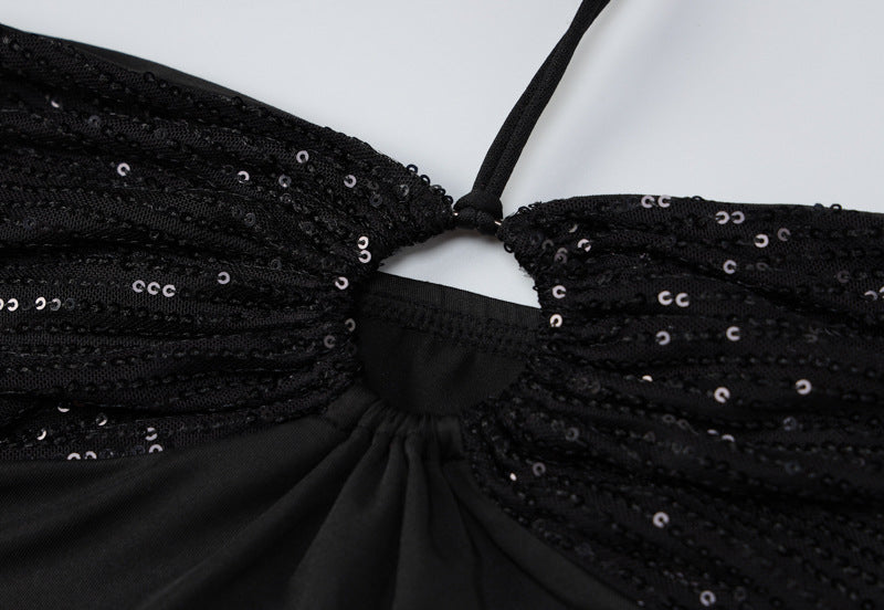 Lace-up Halterneck Open-back Slit Dress