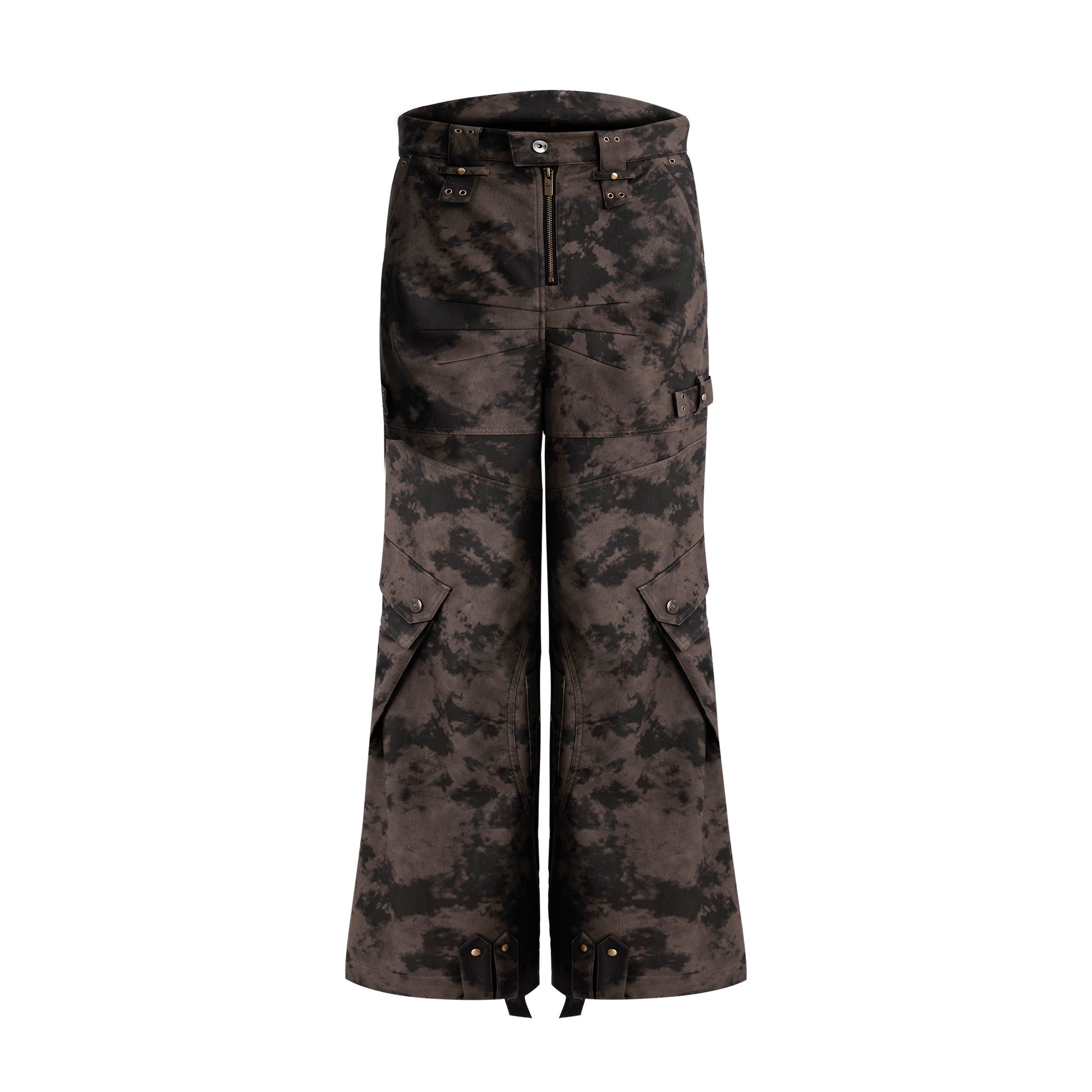 Niche Retro Distressed Blooming Heavy Multi-pocket Workwear Leather Pants
