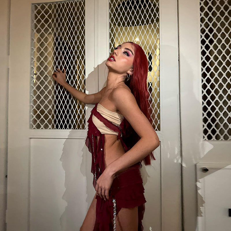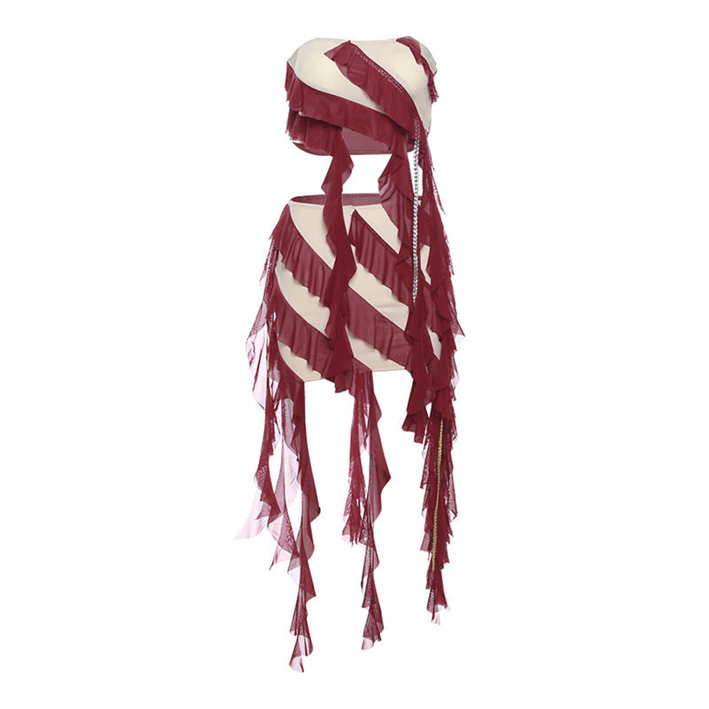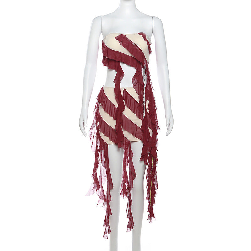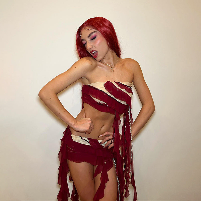 Off-shoulder Color Matching Tube Top Low Waist Hip-wrapped Skirt Suit