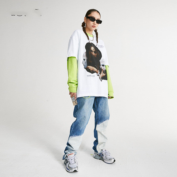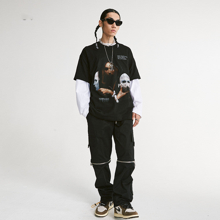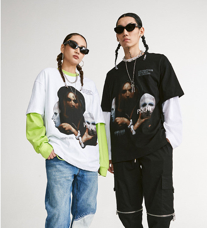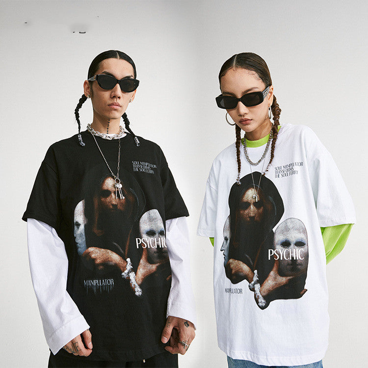 Personalized Dark Mask Print Top High Street Retro Lazy Style Short Sleeves