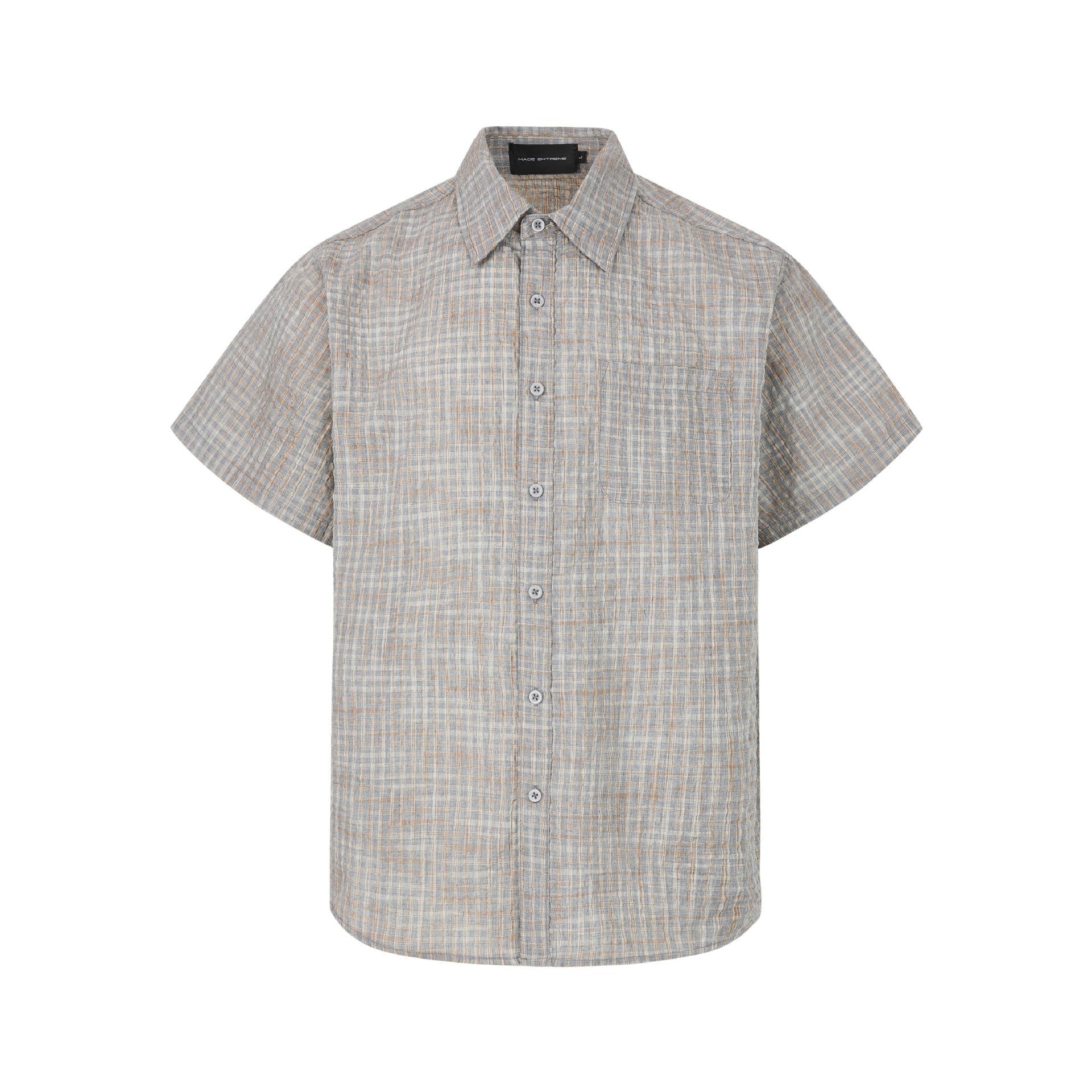Plaid Seersucker Cross Yuke Loose Profile Short Sleeve Shirt Men's Summer