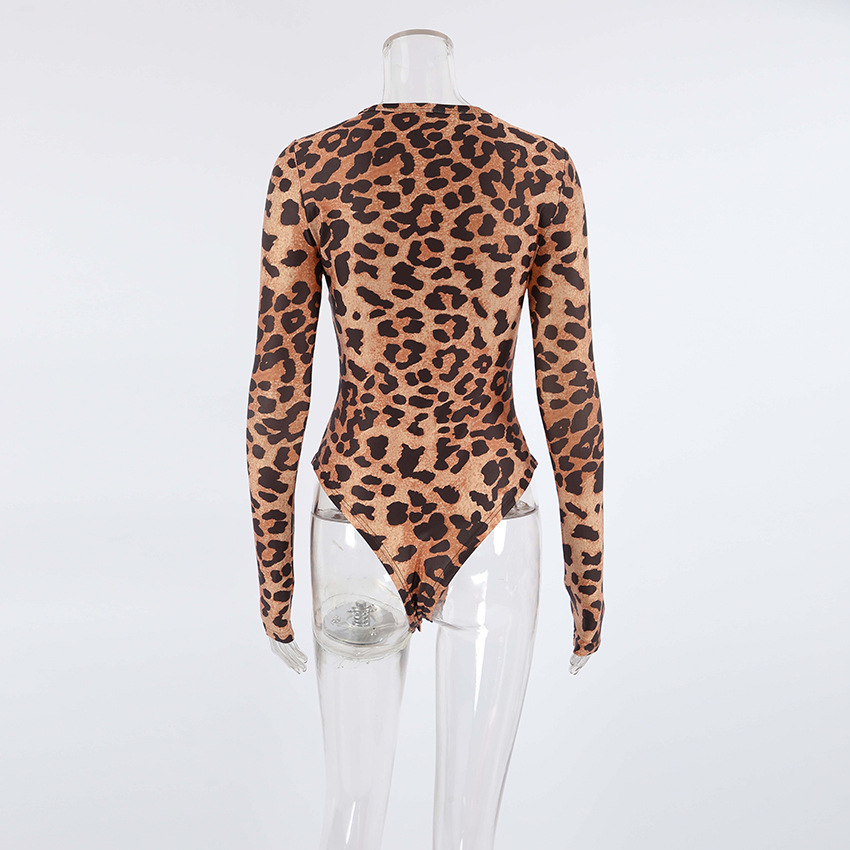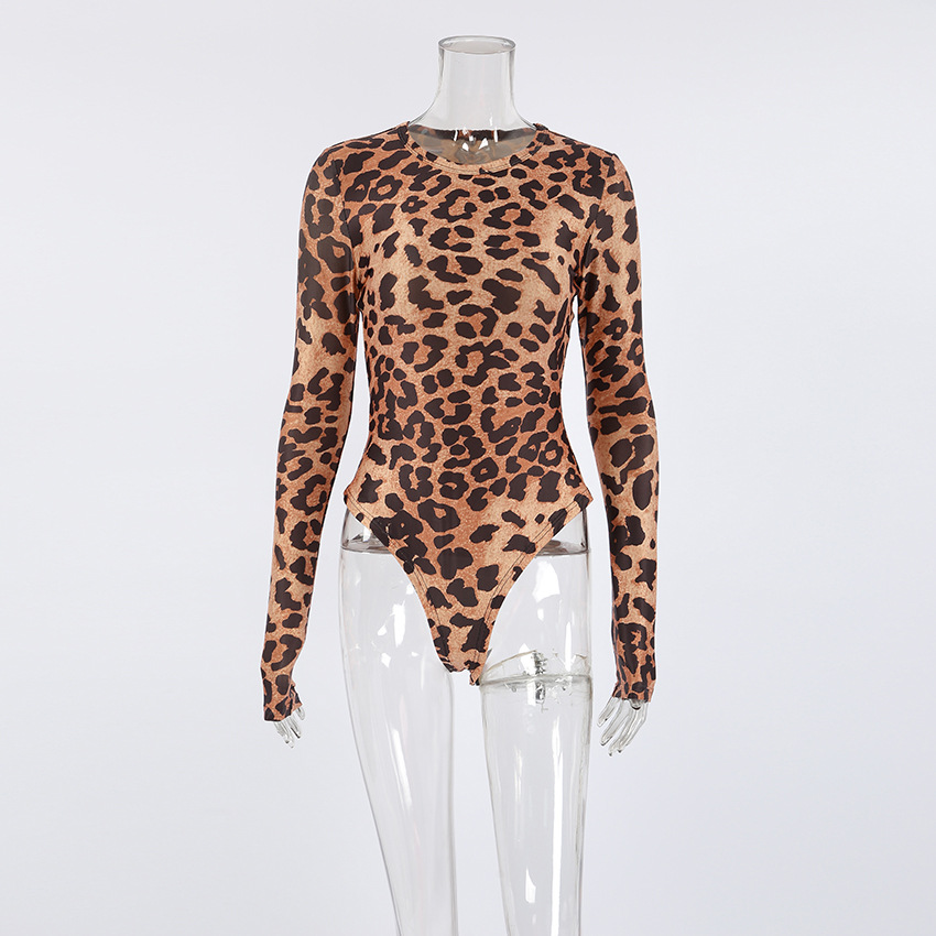 Printed Long Sleeve Round Neck Slim Fit Flattering Jumpsuit