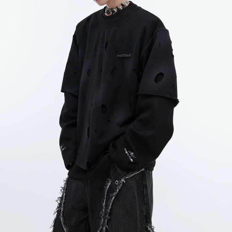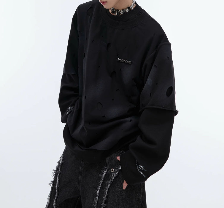 Retro Washed Broken Hole Design Long-sleeved Sweater