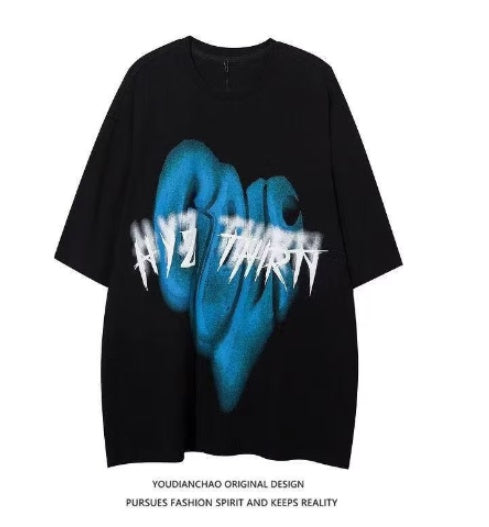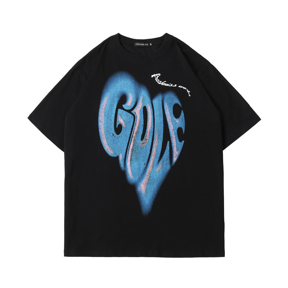 Round Neck Half Sleeves Bf Harajuku Style Trend Loose Half Sleeves