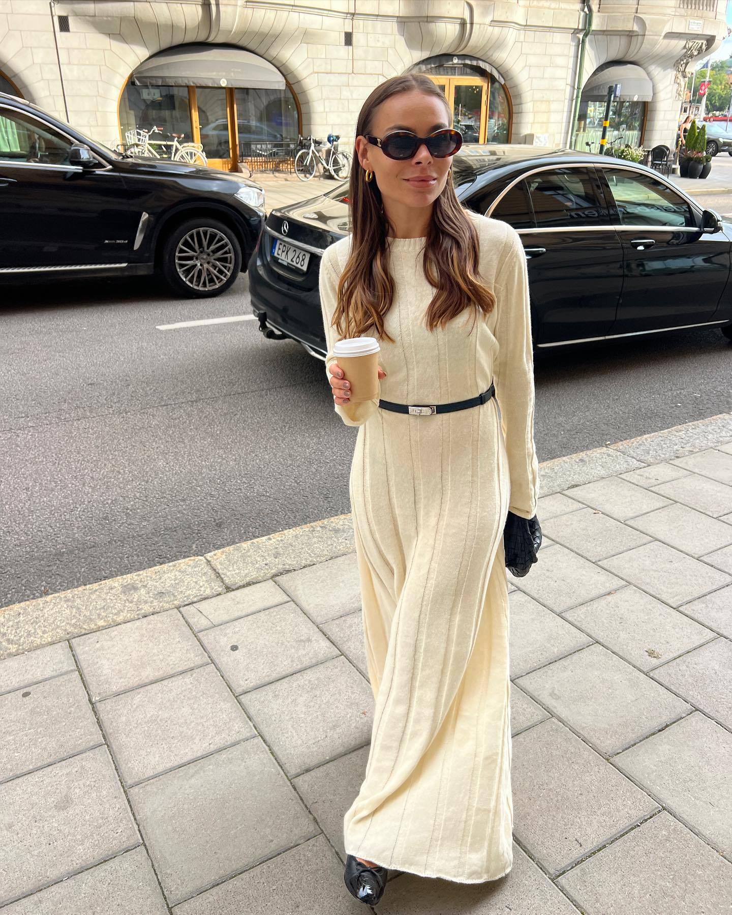 Round-neck Long Knitted Dress Solid Color Women
