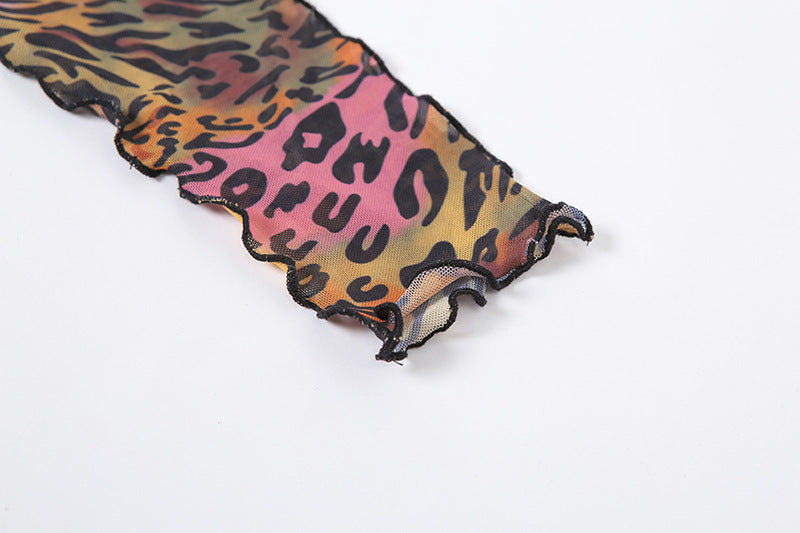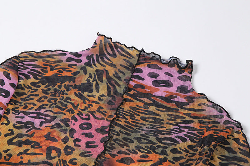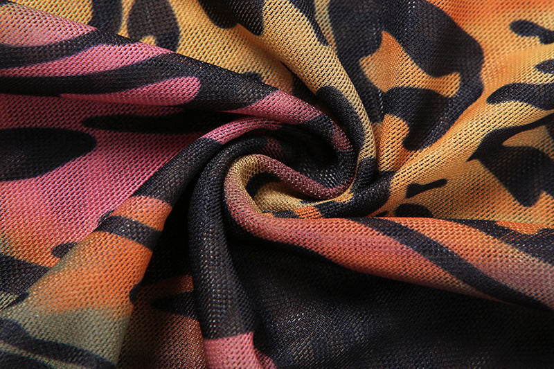 Round Neck Long Sleeve Fashion Slim Printed Mid-length Dress Women