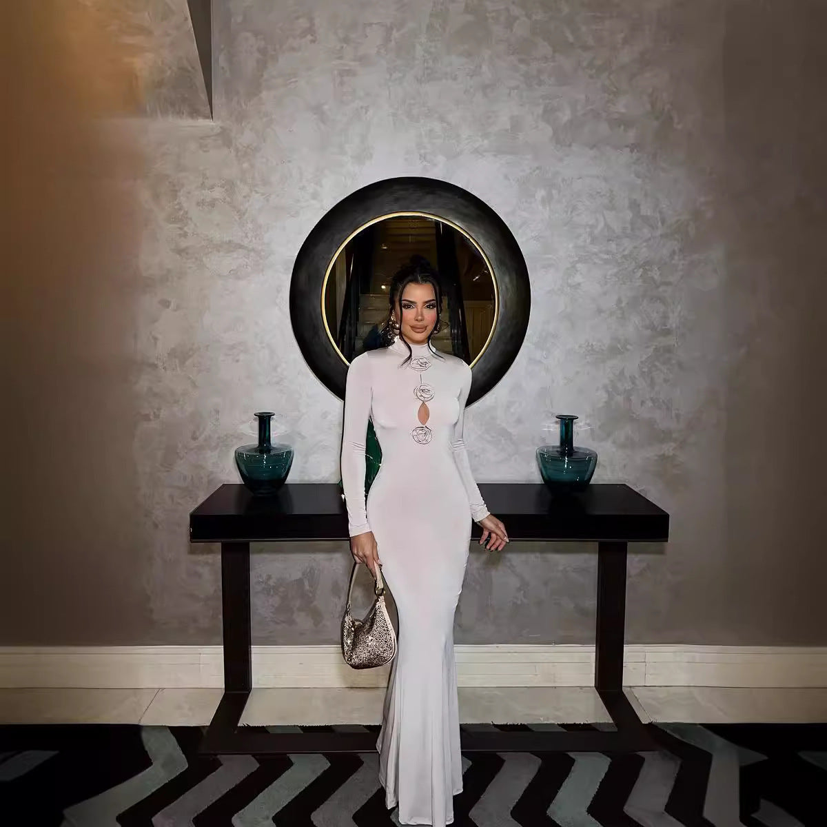 Sexy Cutout Three-dimensional Flower Long Sleeve Slim Fit Dress