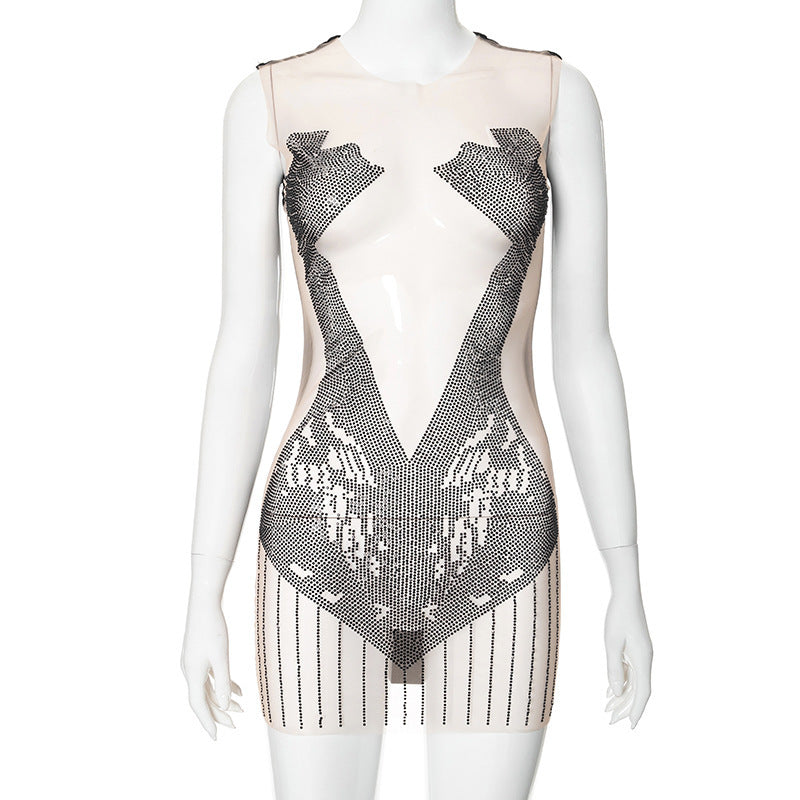 Sheer Mesh Hot Drilling Dress