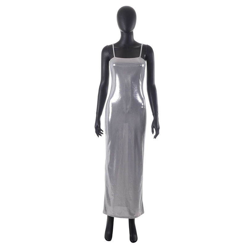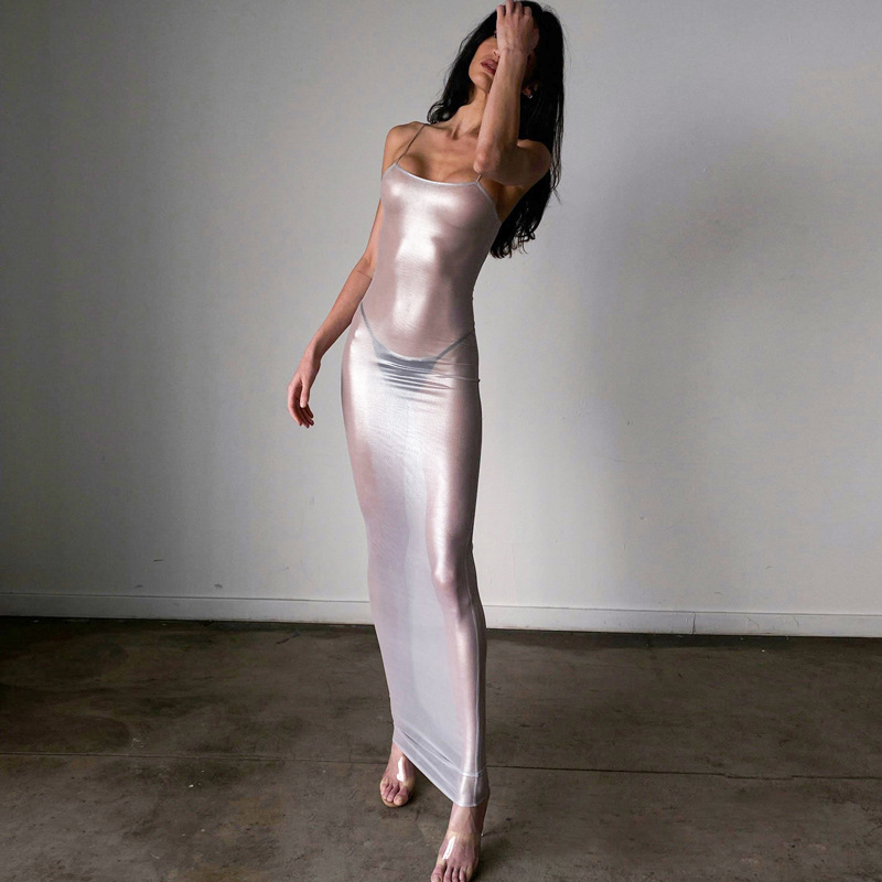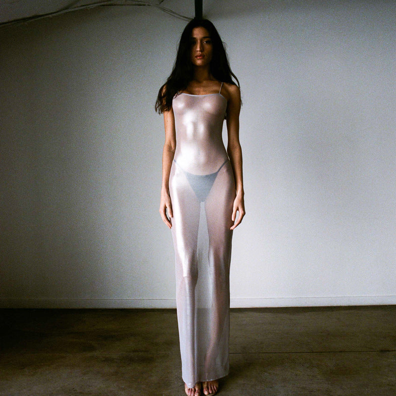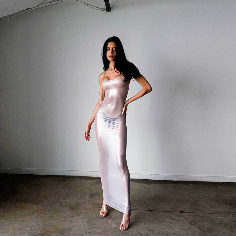 Spaghetti Straps Sleeveless See-through Long High Waist Dress