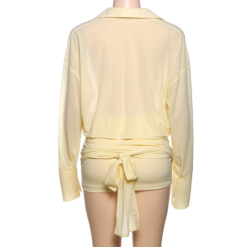 Spring New Elegant Sexy Lapel Slim-fit Sheath Lace-up Shirt Dress