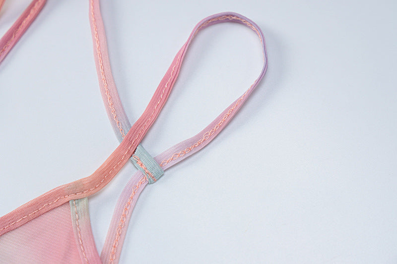 Spring New Sheer Mesh Side Hollow Jeweled Sling High Waist Dress Women
