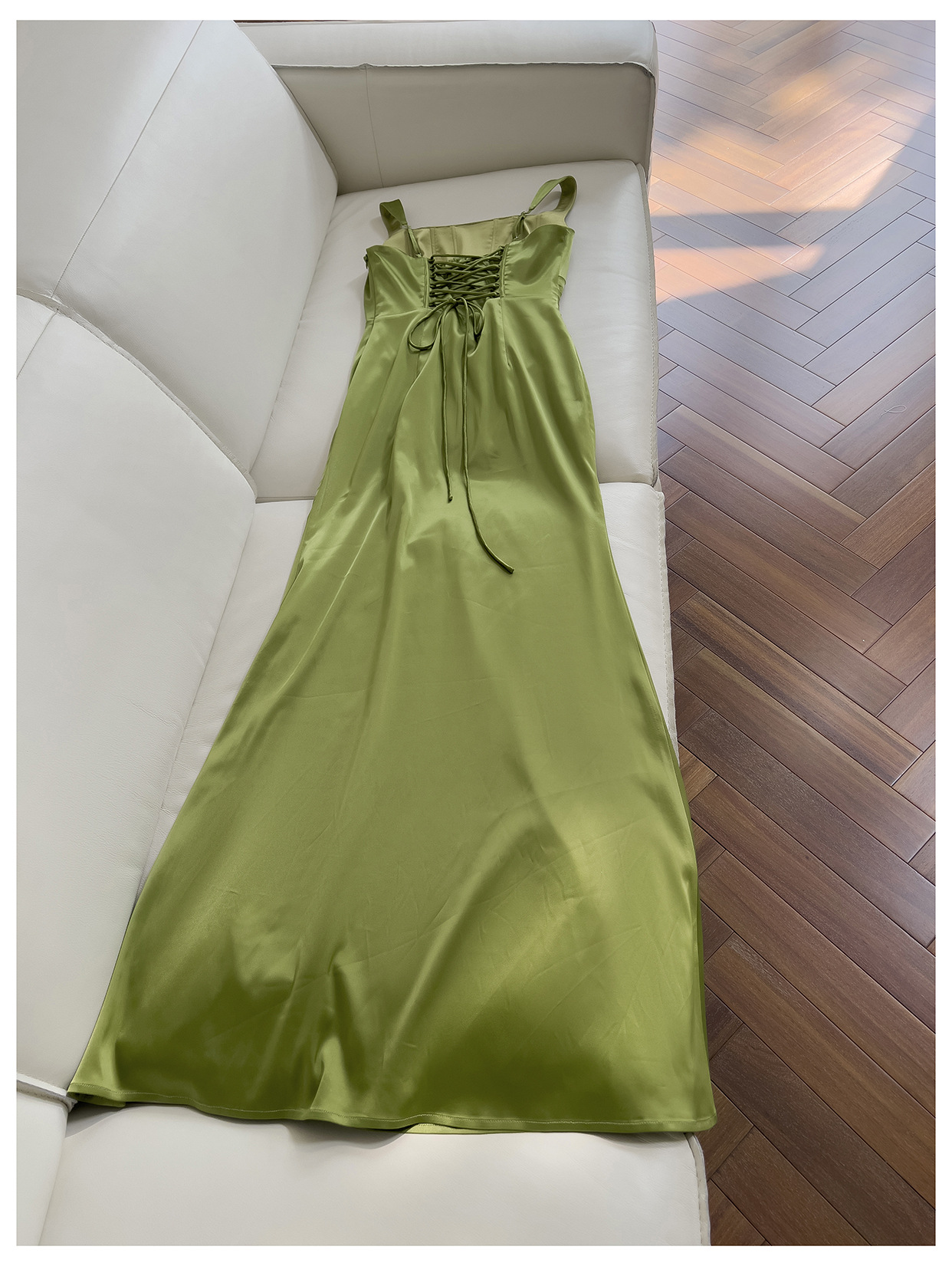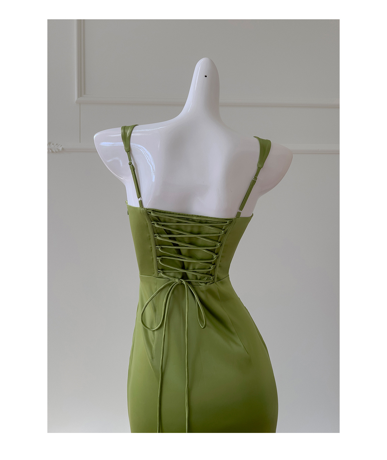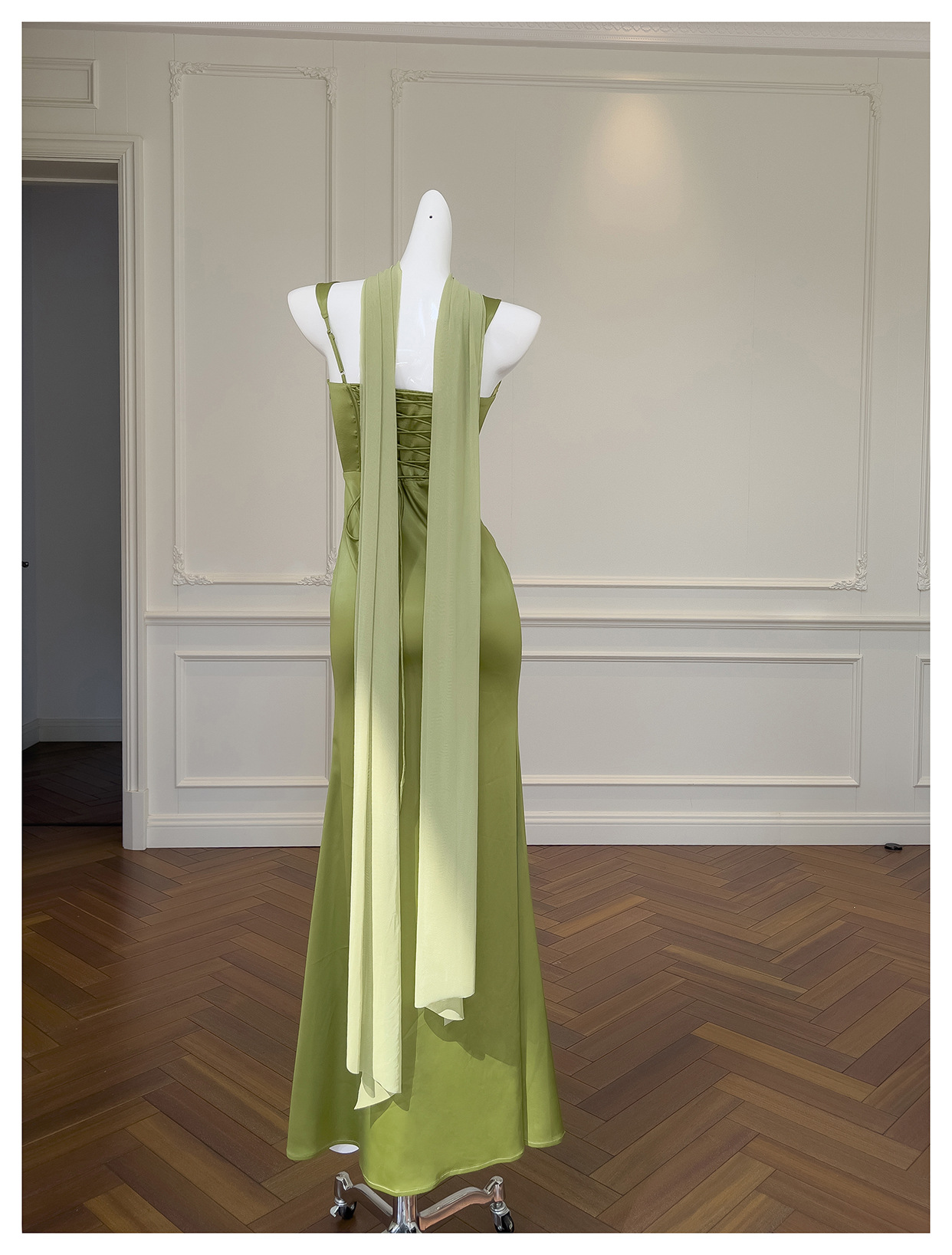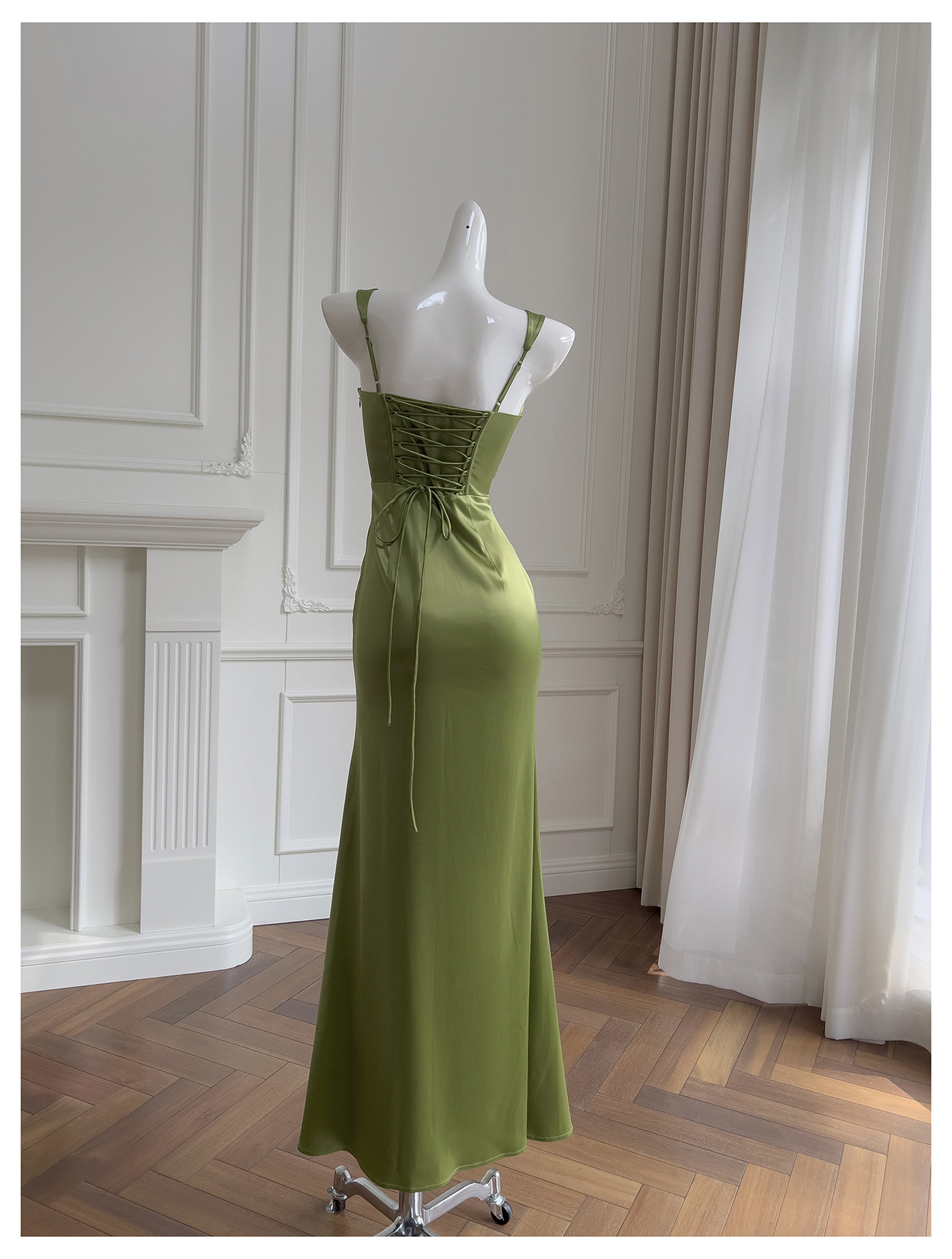 Square Collar Pleated Satin French Slim Fit Long Dress