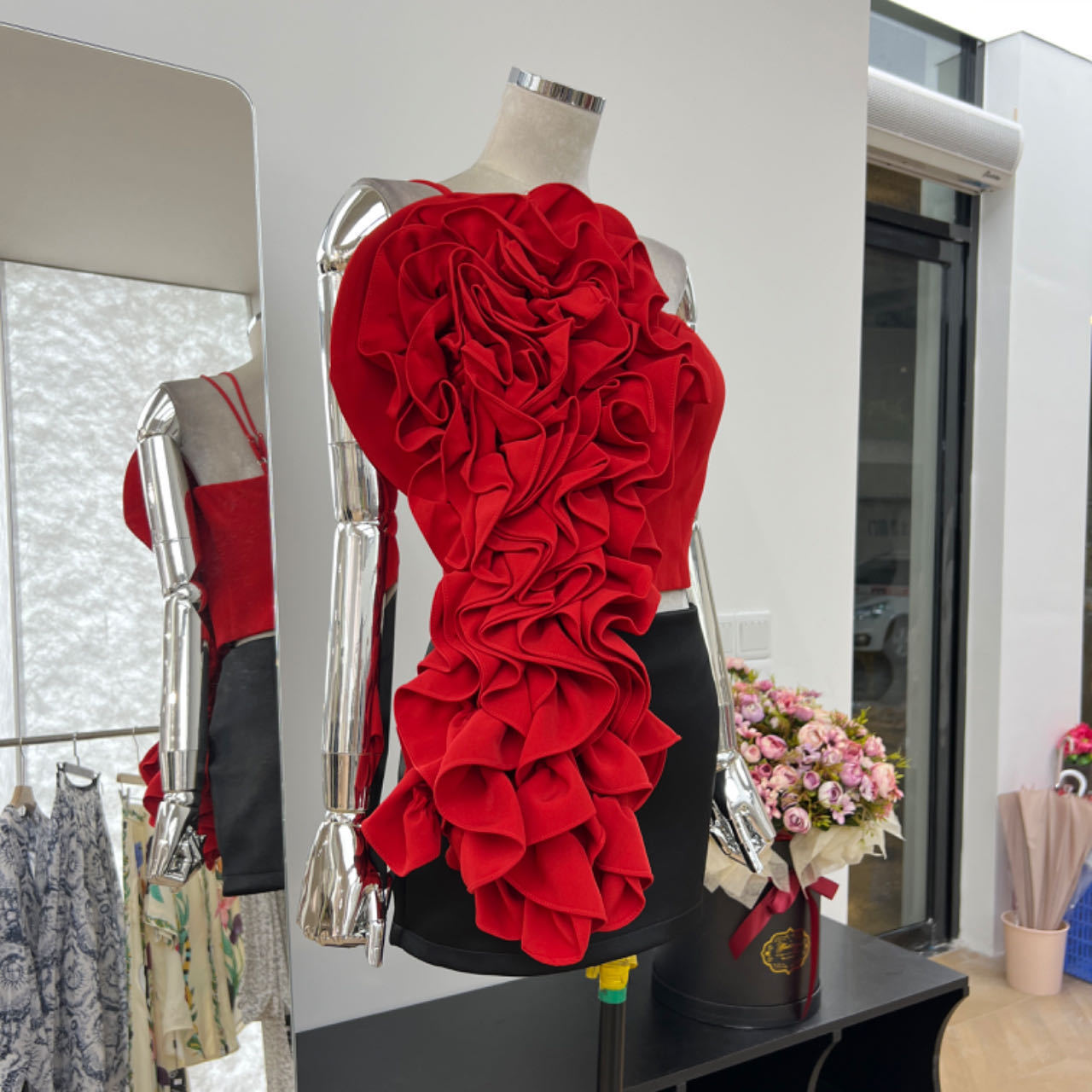 Street Shot Goddess Flower Ribbon One-shoulder Vest
