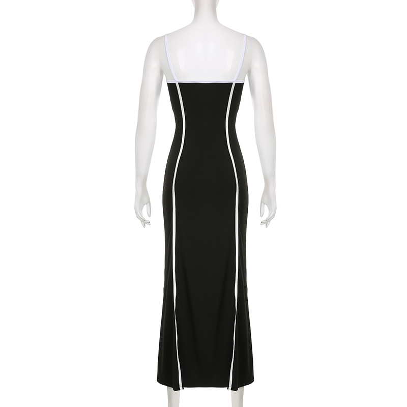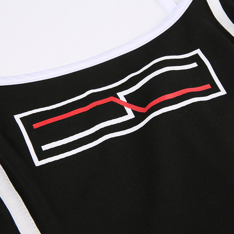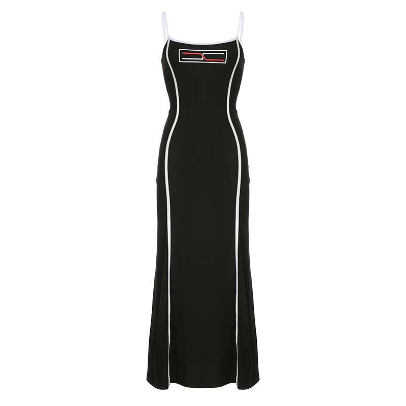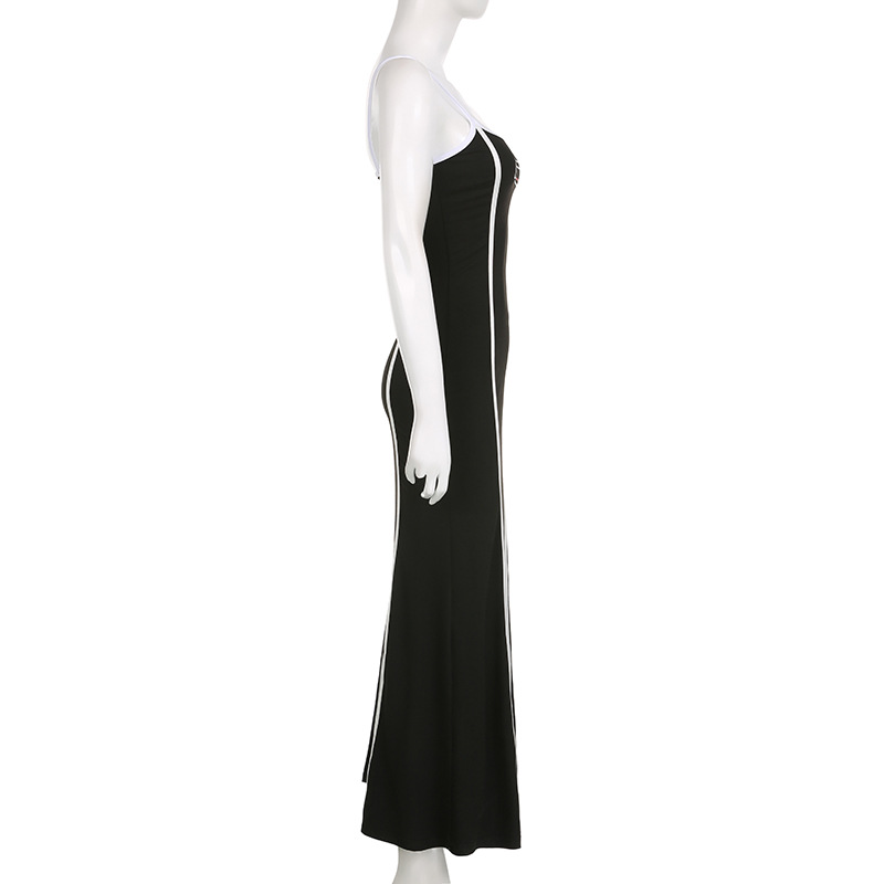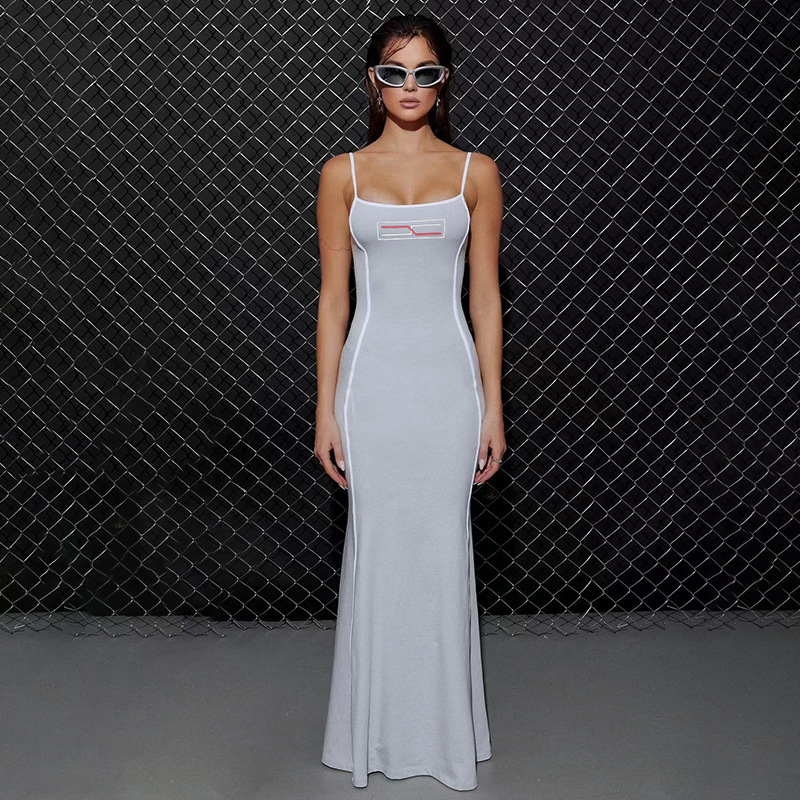 Striped Color Contrast Patchwork Letter Printed Tight Locomotive Long Dress
