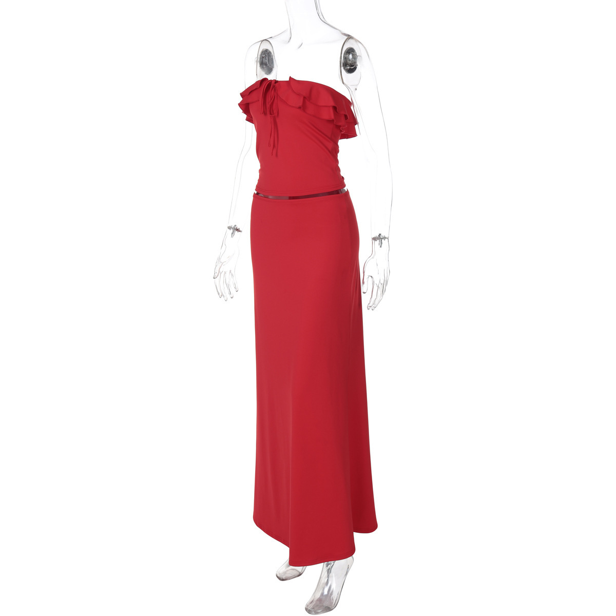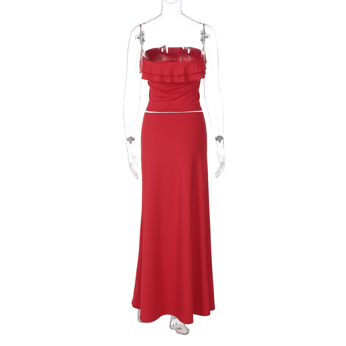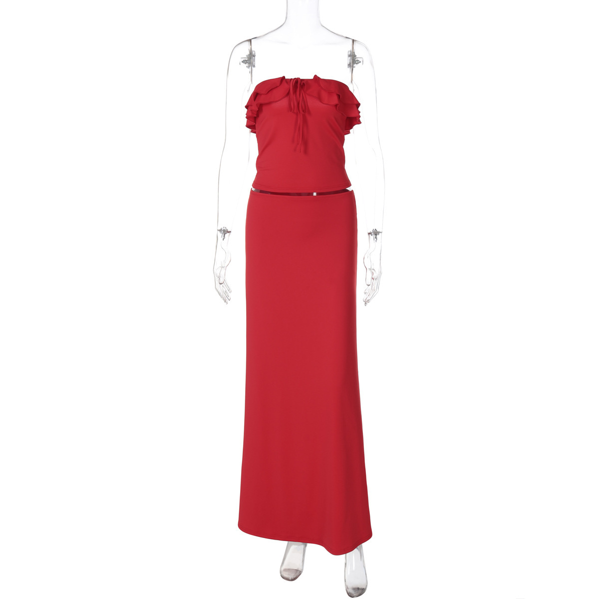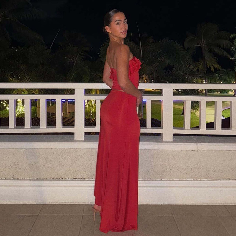 Summer New Elegant Wooden Ear Tube Top Package Hip Long Skirt Two-piece Set