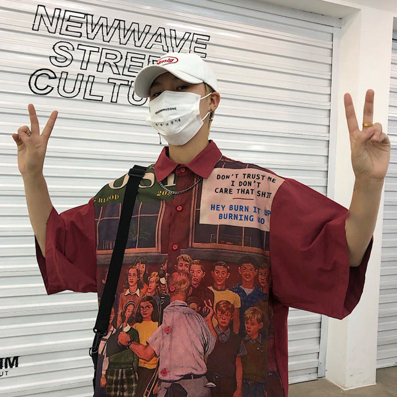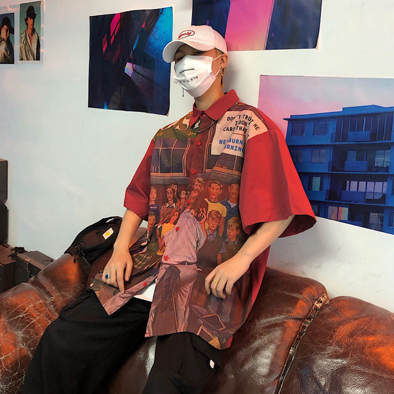Summer Thin Red Short Sleeve Shirt