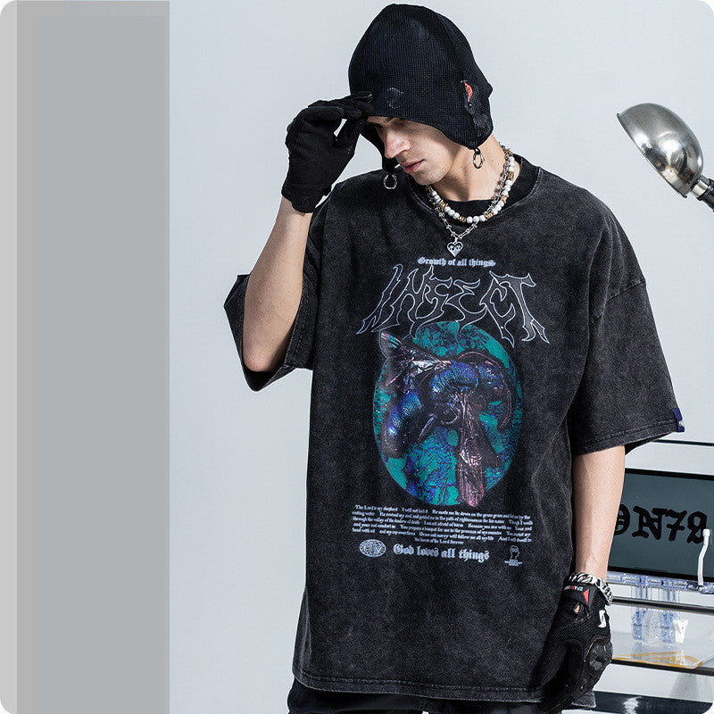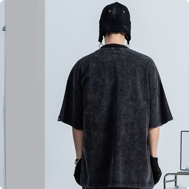 Vintage Dark Wash Distressed Short Sleeves