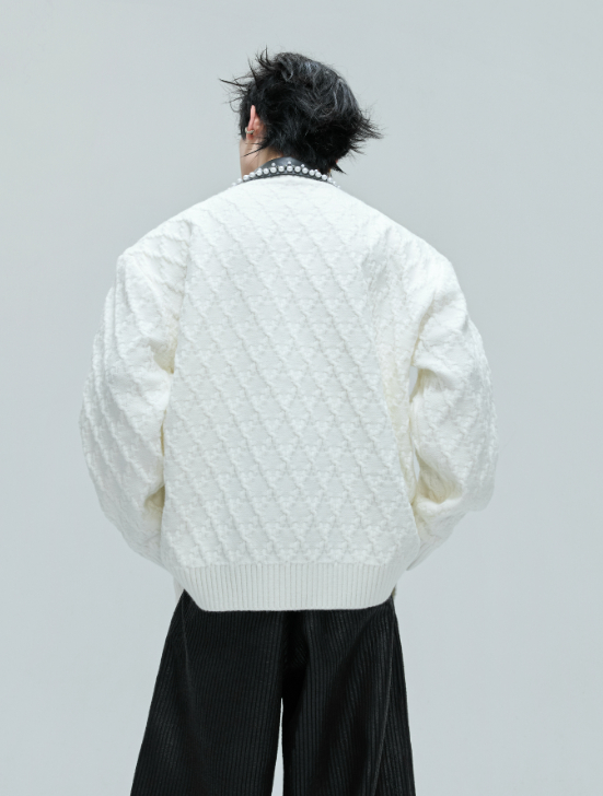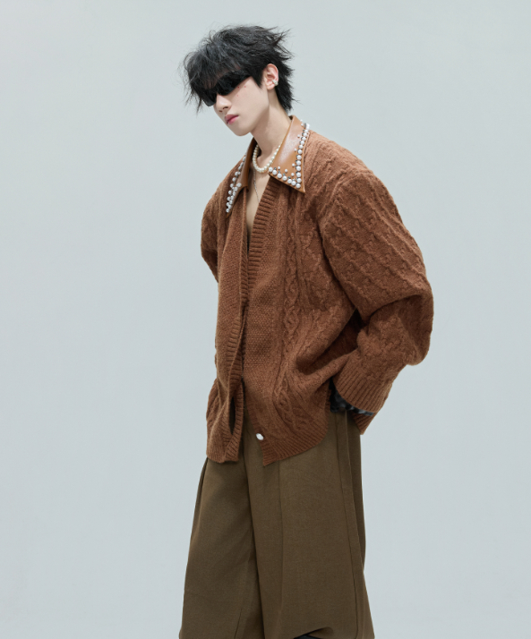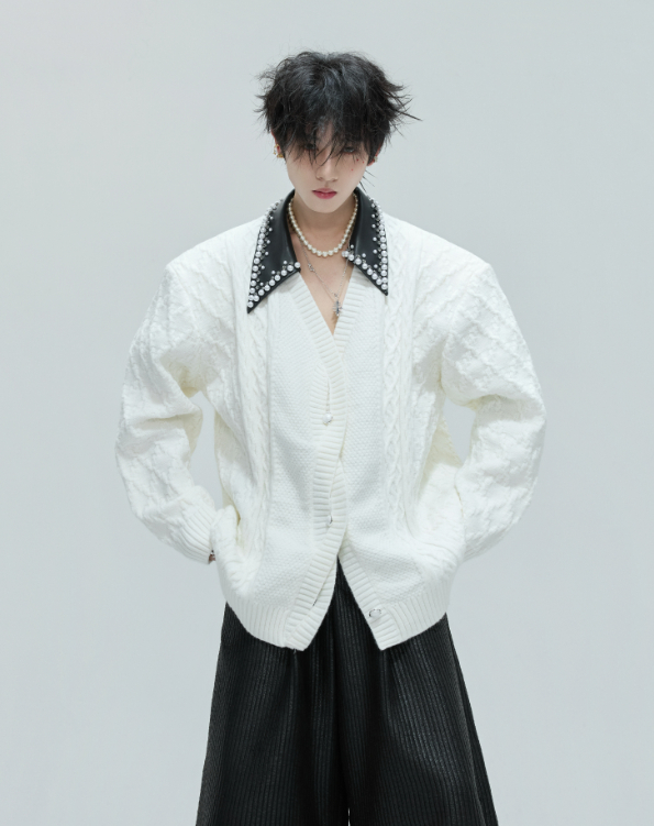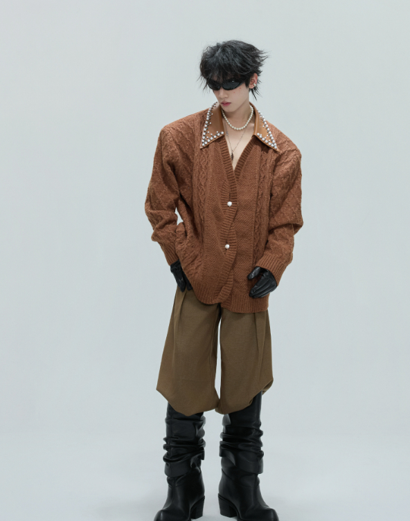 Vintage Handmade Pearl Padded Lapel Knitted Cardigan