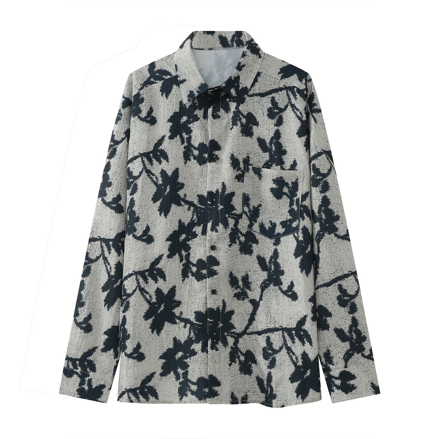 Vintage Ink Jacquard Contrast Smudge Long Sleeve Shirt