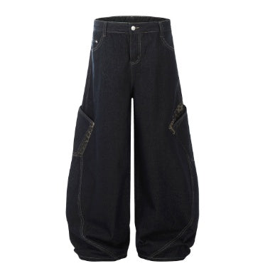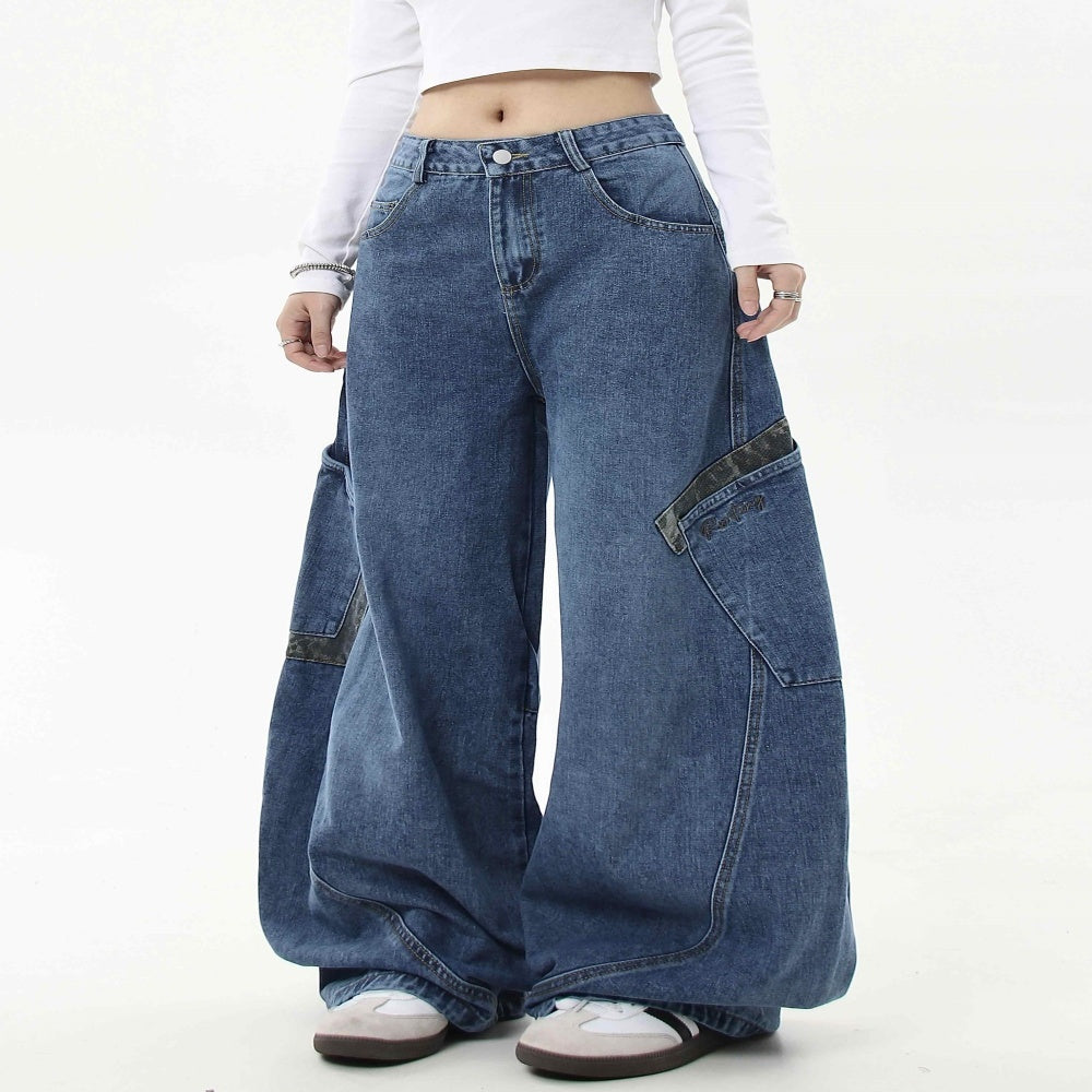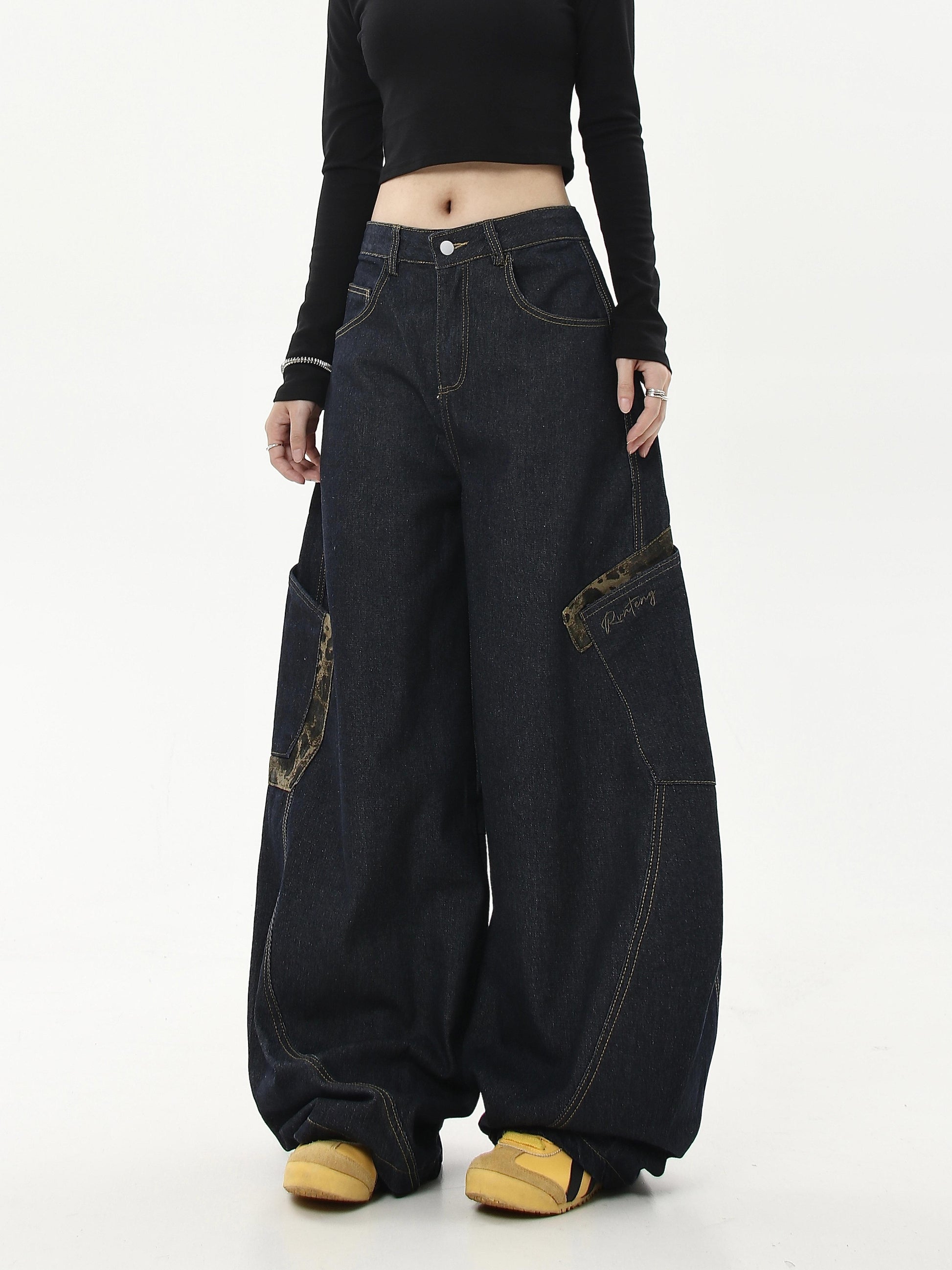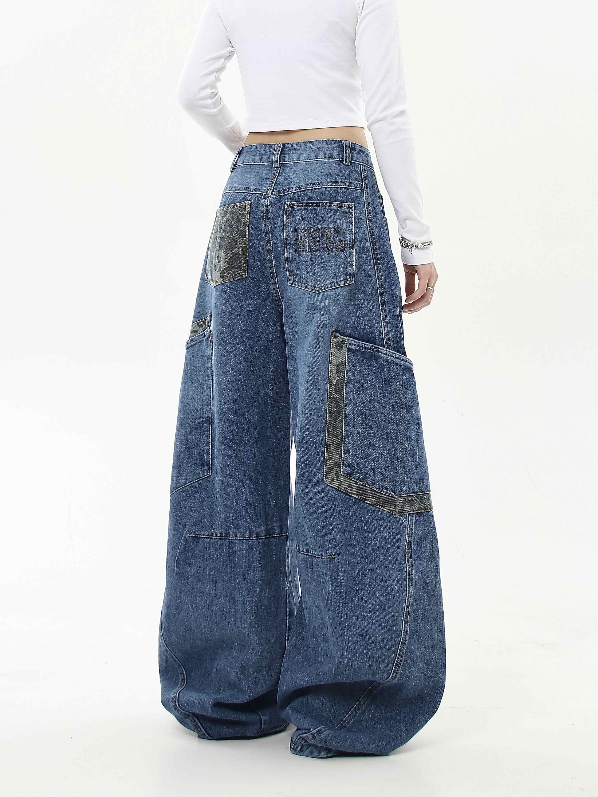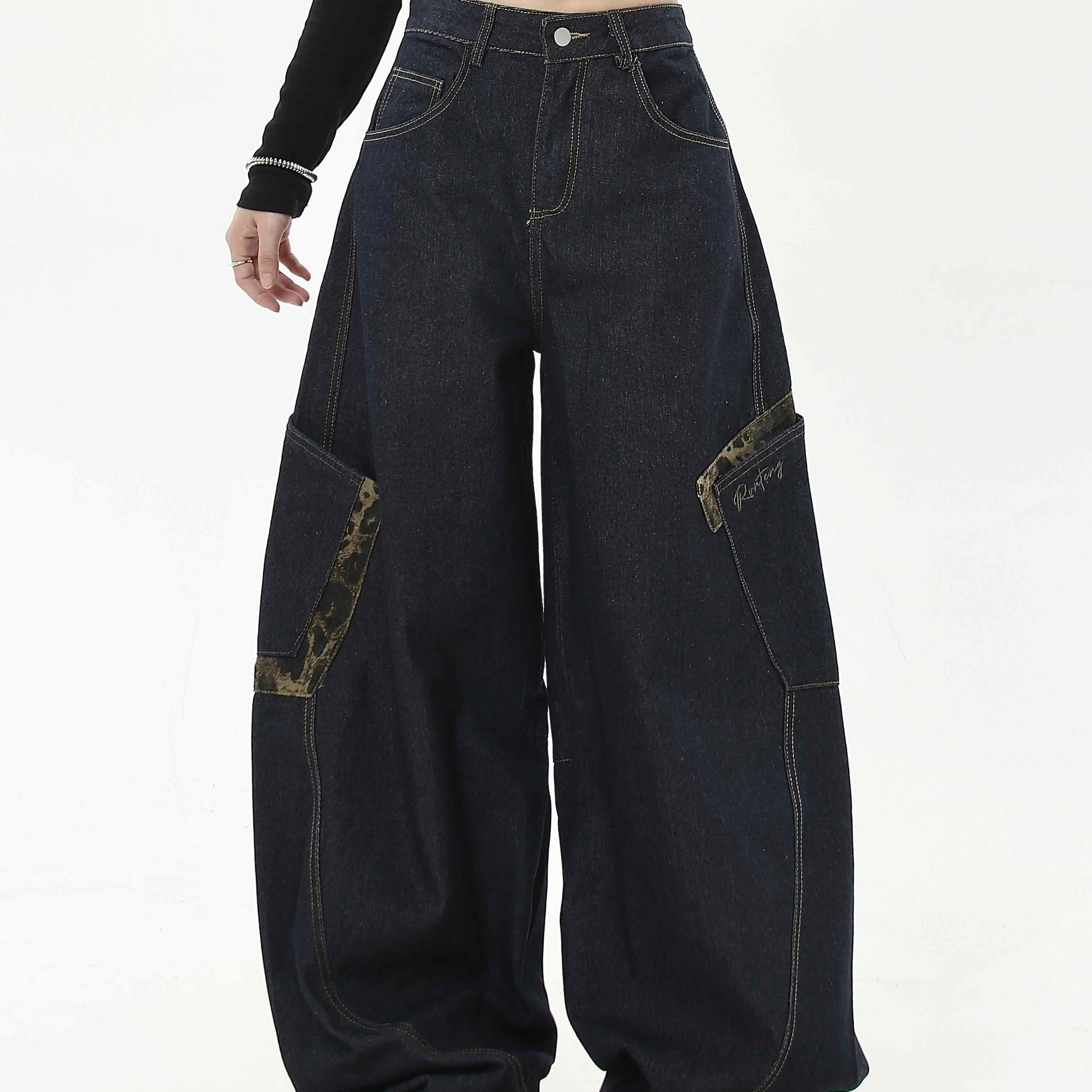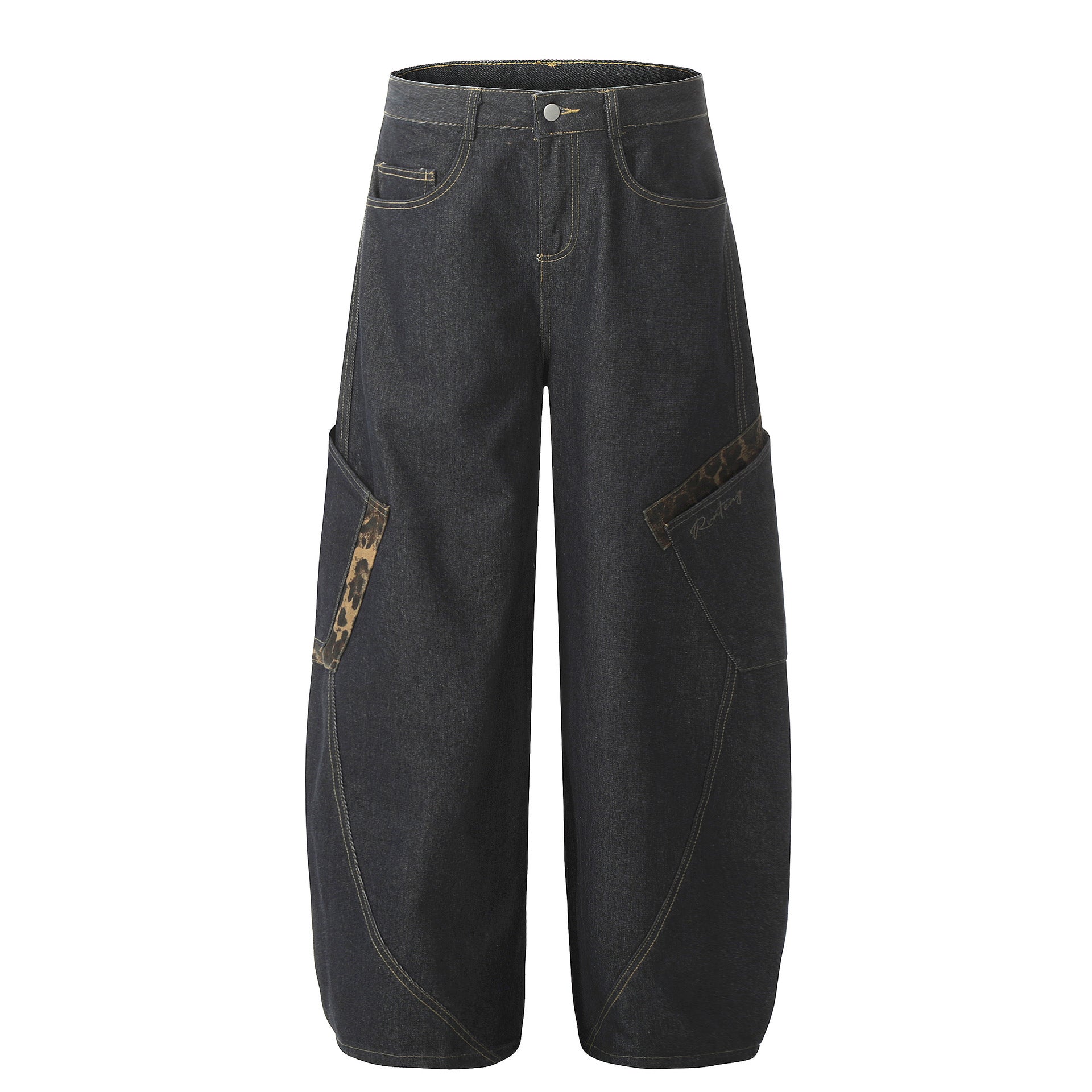 Vintage Leopard Print Patchwork Large Workwear With Pocket Jeans
