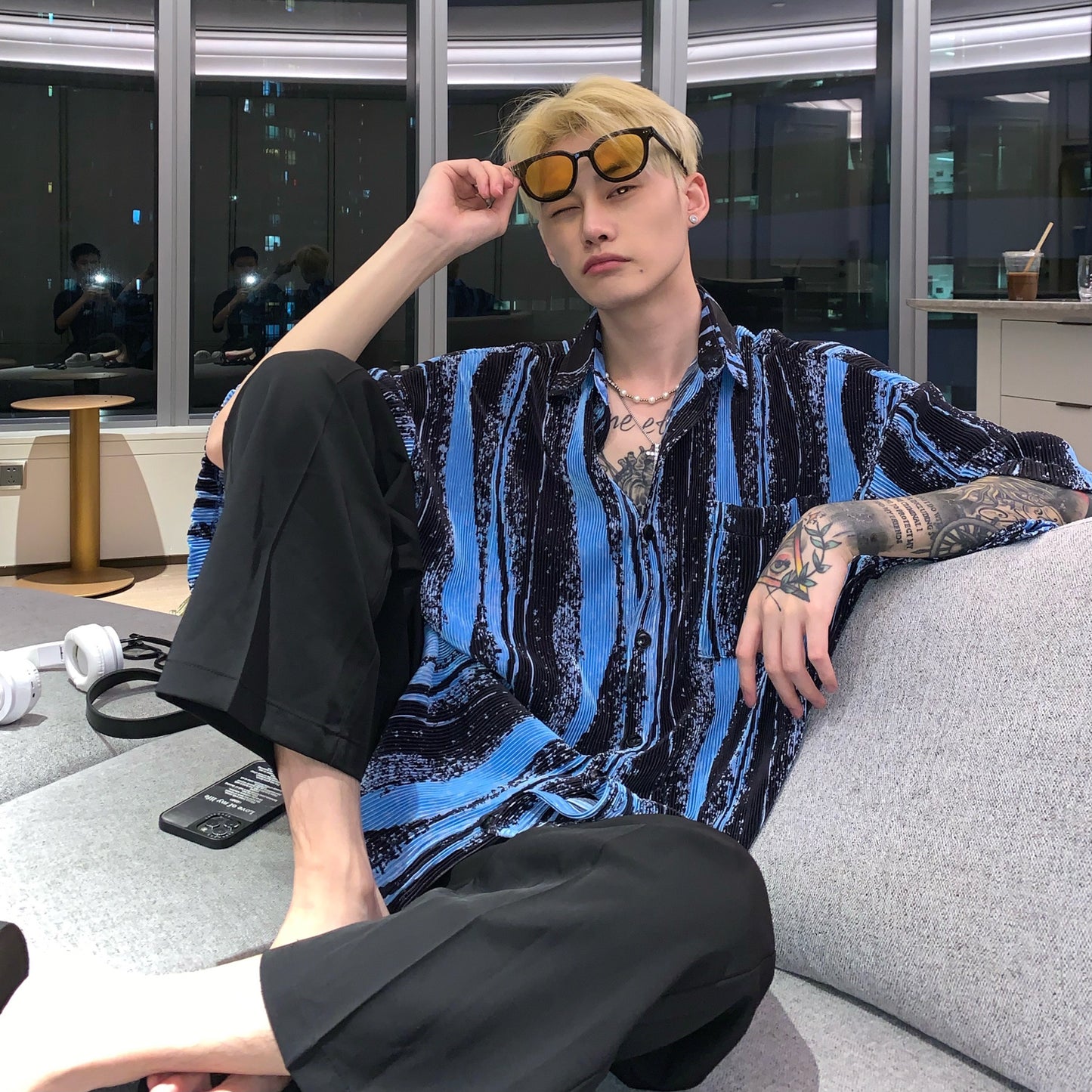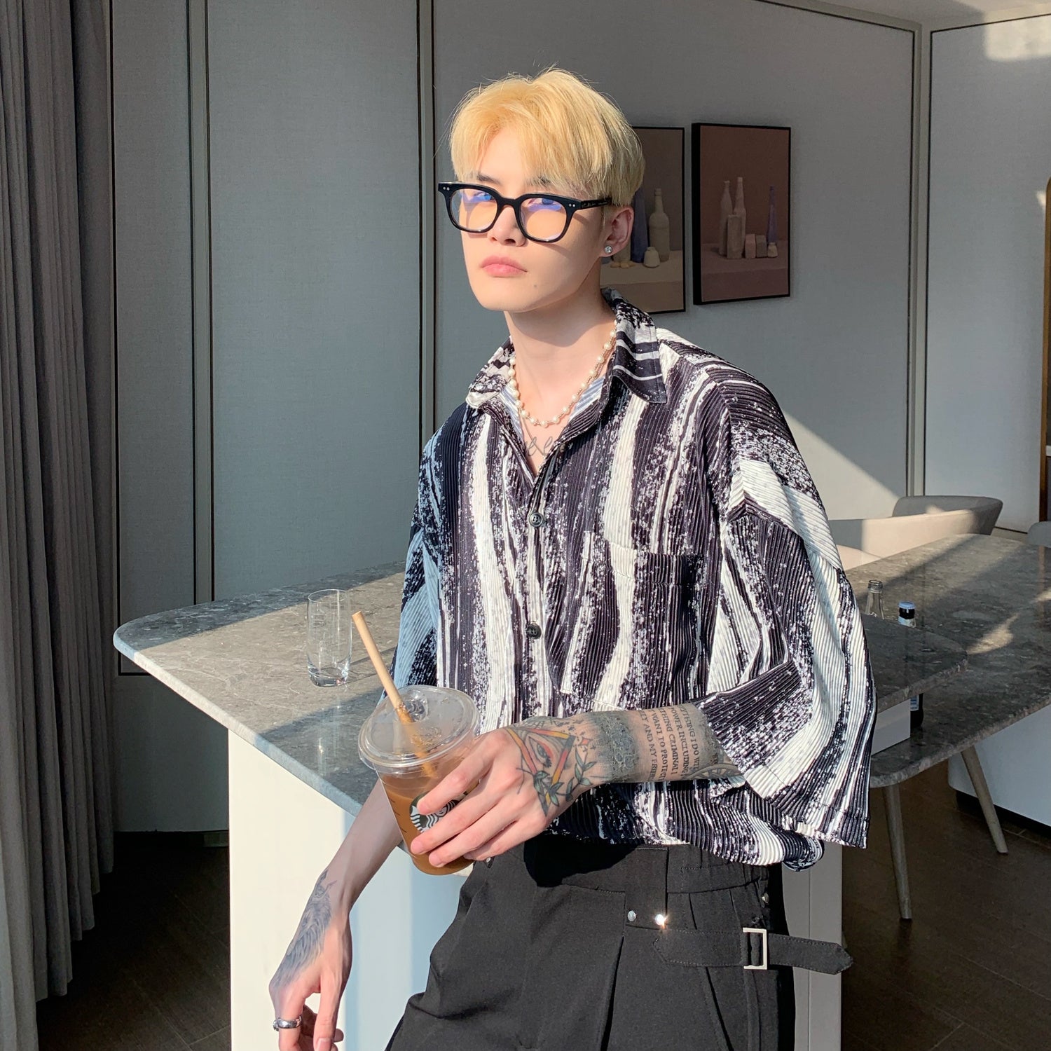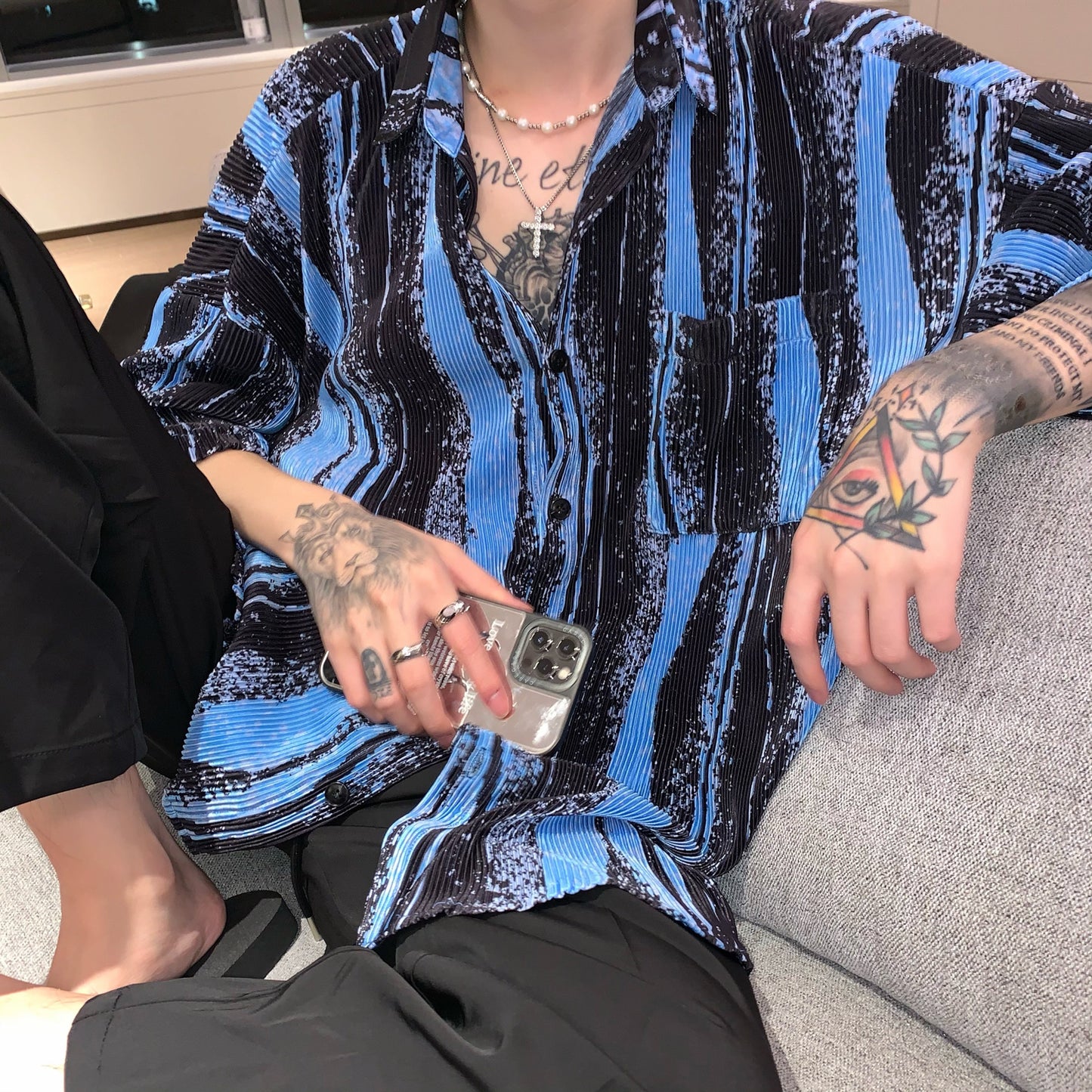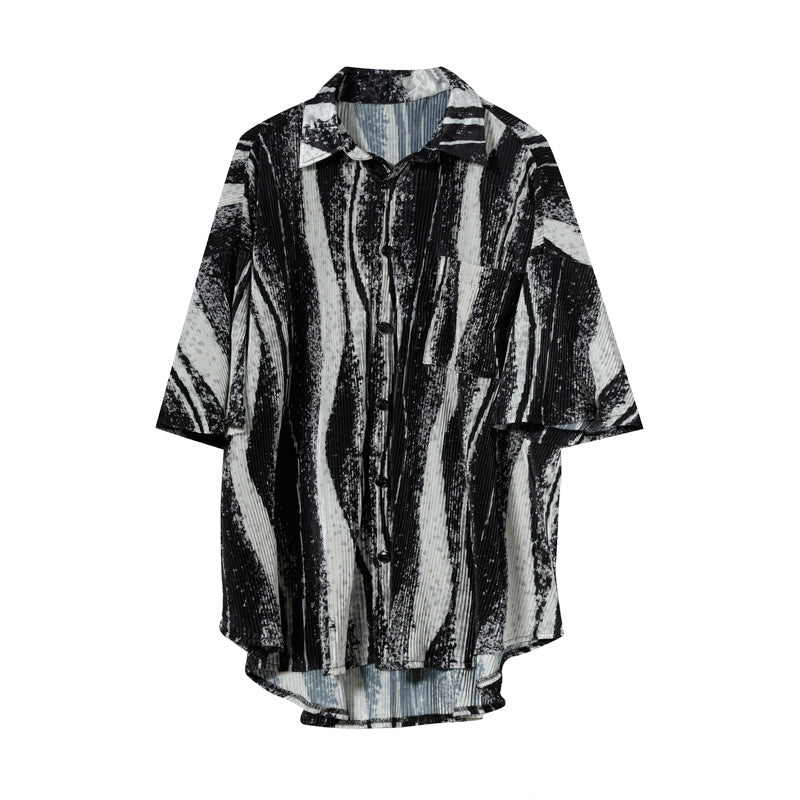 Wavy Drape Shirt Ink Tie-Dyed Lazy Wind Shirt Men's Short Sleeves