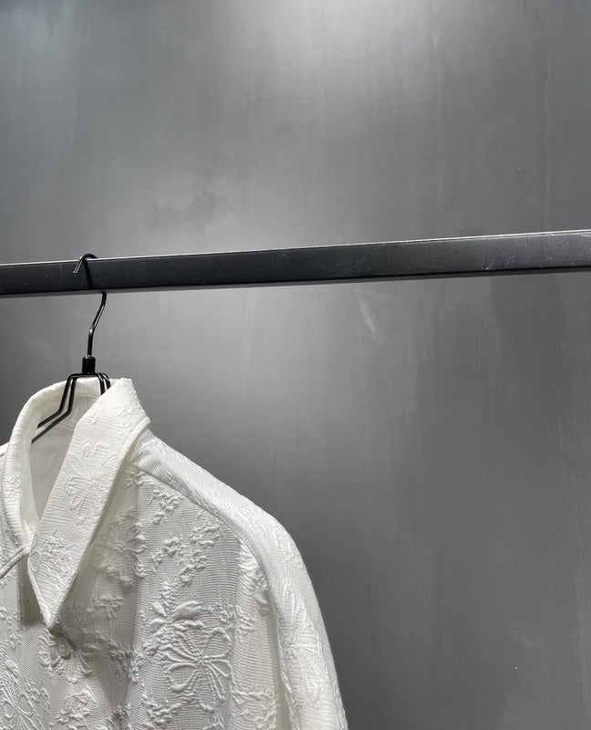 White Jacquard Flower Shirt Refreshing Cool Breathable Black Elastic Short Sleeve Wide Version Loose Version For Men And Women Couples