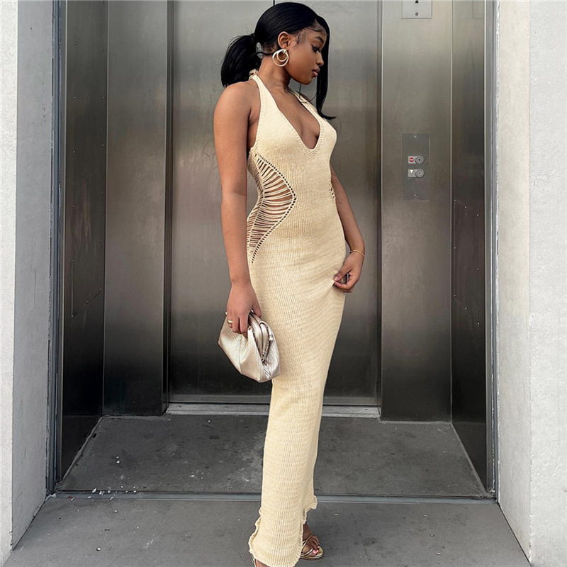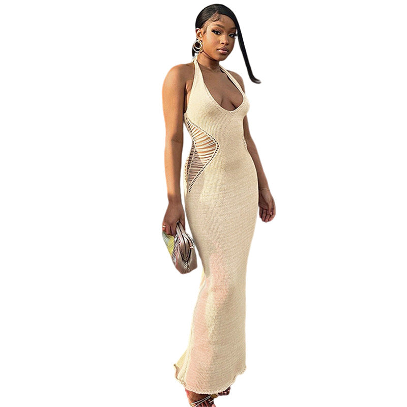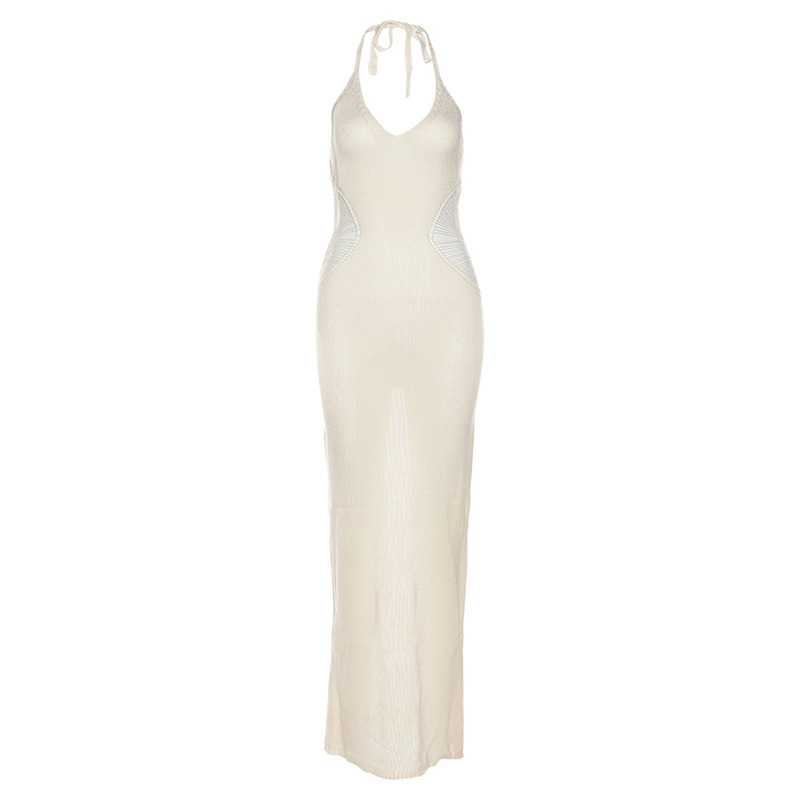 Women's Halter Neck Solid Color Back Breathable Slim Fit Dress