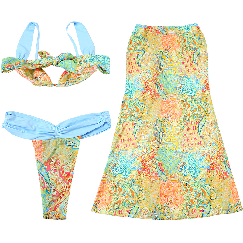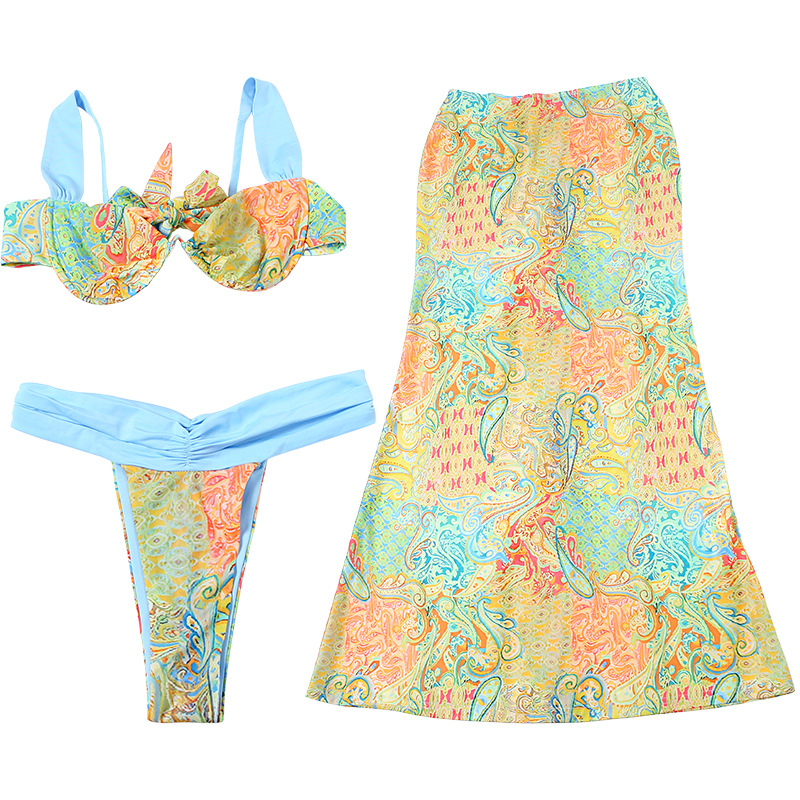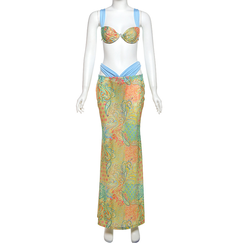 Women's Printing Color Contrast Lace-up Three-piece Set