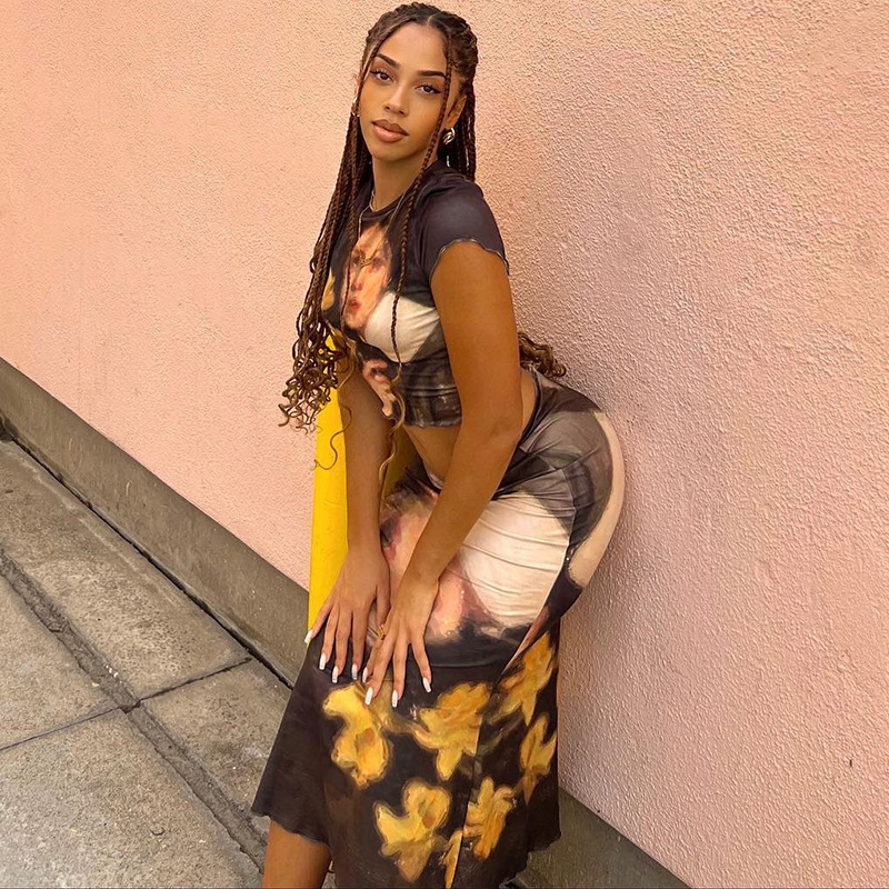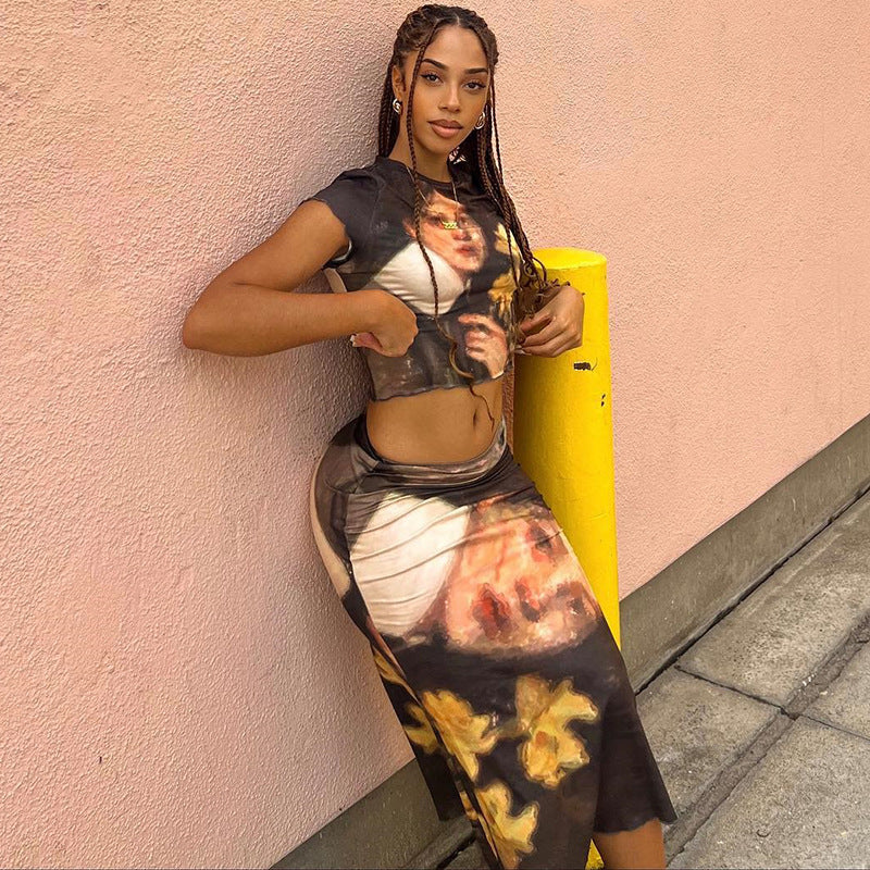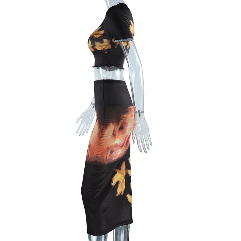 Women's Round-neck Top And Midi Skirt Two-piece Set